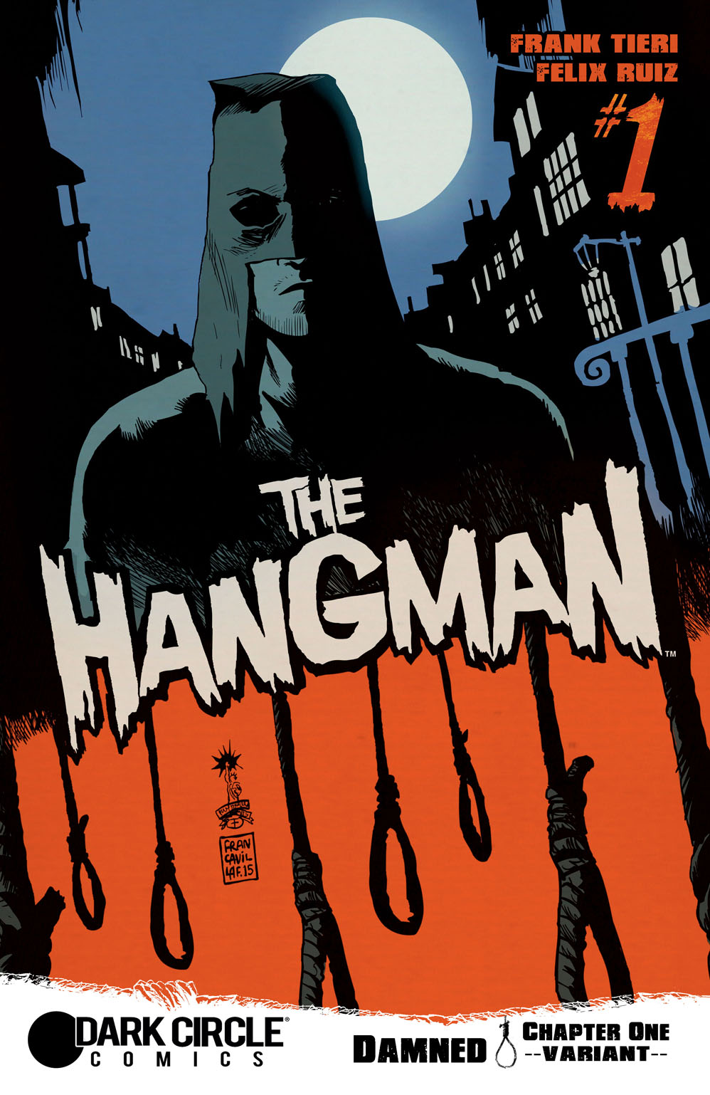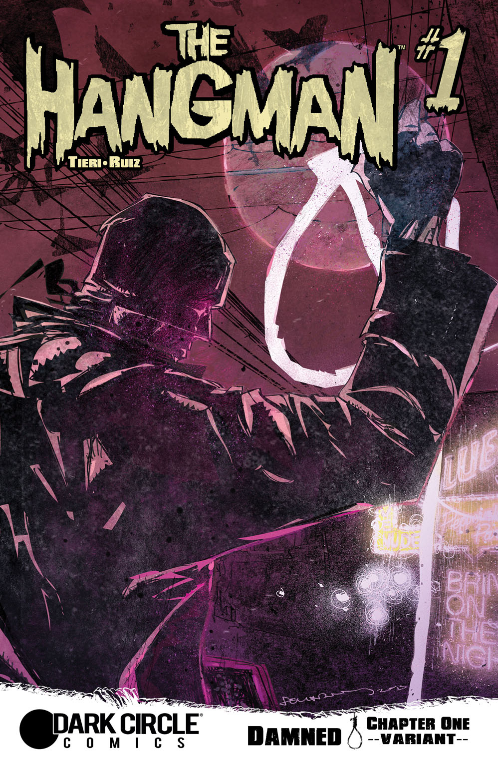 NEW ONGOING SERIES FROM DARK CIRCLE! They say the Hangman is nothing more than an urban legend. A spook story told to scare criminals straight. But those who encounter him—like hitman “Mad Dog” Mike Minetta—know different. They know that when he comes for you… you’re dead already. Join fan-favorite writer Frank Tieri (WOLVERINE, BATMAN) and artist extraordinaire Felix Ruiz (WOLVERINE MAX, HALO) for an ongoing tale of horror, the supernatural and violence… and learn why some men may never be redeemed.