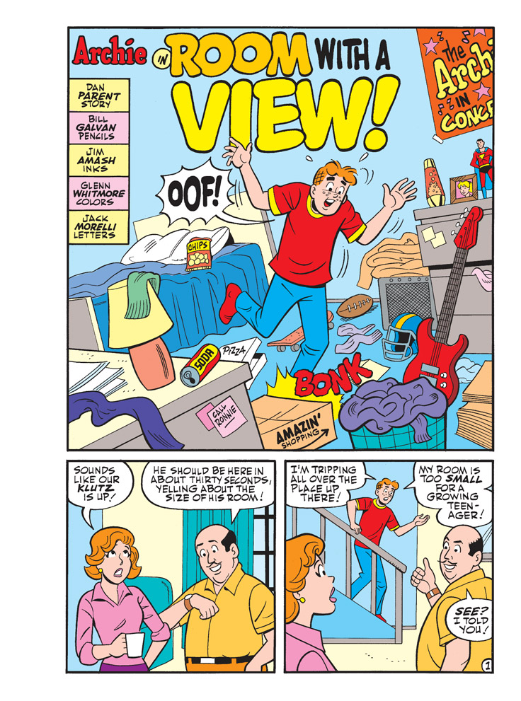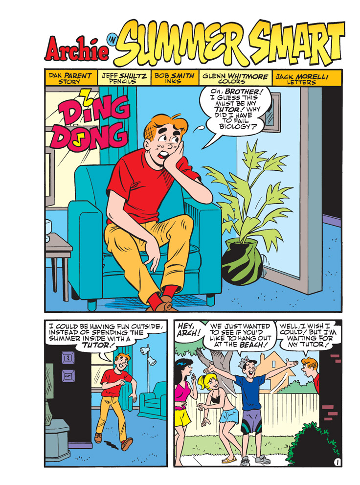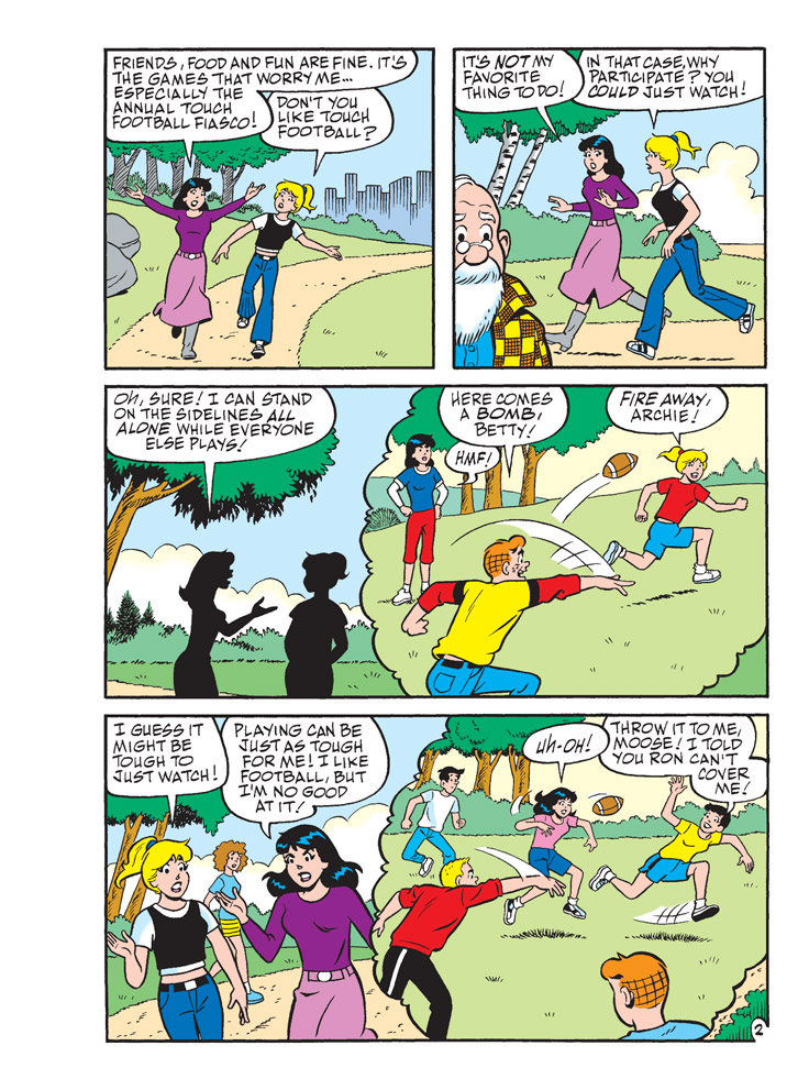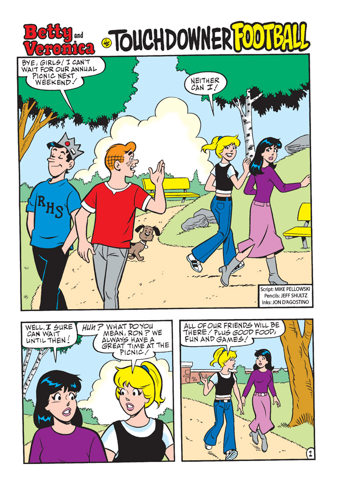What’s new in the town of Riverdale? Take a look below at previews of ARCHIE 1000 PAGE COMICS ROMP and B&V FRIENDS JUMBO COMICS DIGEST #264.