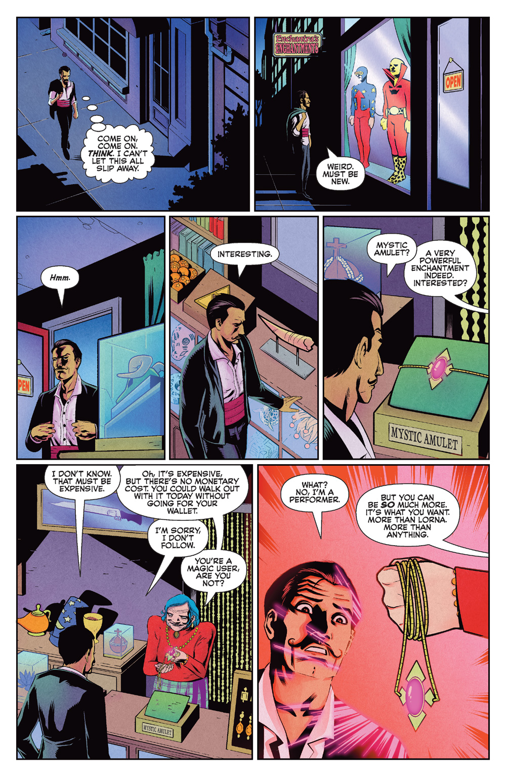 In the all-new story by Joe Corallo and Butch Mapa, Kardak is a struggling stage magician, trying to keep the audience on their feet and the bills paid, but he’s having a rough go at it. When a strange encounter late one night leads to what looks like a perfectly timed shortcut to success, he may have to learn that all-important rule — there are no shortcuts in showbiz! While this one has given Kardak the true magic he’s been searching for, that’s not all its brought back.