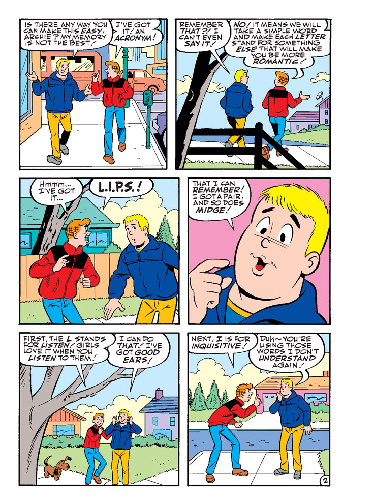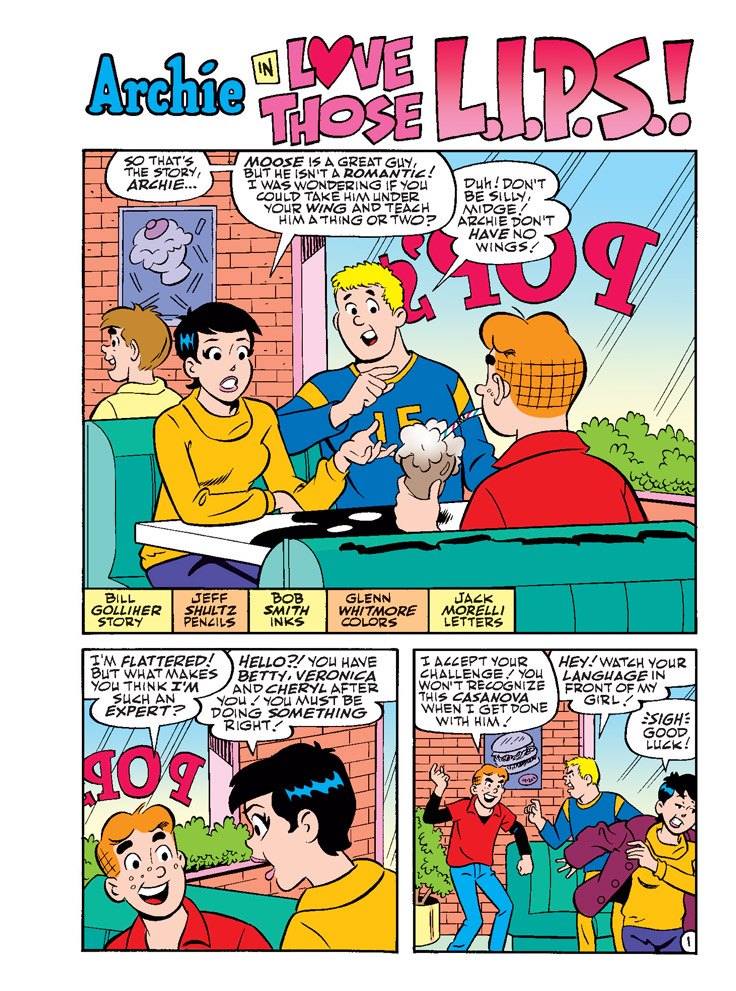 NEW CLASSIC-STYLE LEAD STORY: “Love Those L.I.P.S.!” Archie tries to coach Moose on romance, and Midge is sure to be in for a surprise at her boyfriend’s new debonair ways!