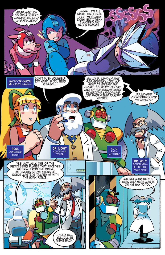 The battle ain’t over yet, and the legend has only just begun! Based on the renowned game Mega Man 3 comes “Legends of the Blue Bomber” Part Three: We’ve seen Mega Man battle Robot Masters many times before, but now witness the automaton insanity unfold from the perspectives of their creators! Magnet Man wonders if he’s led his brothers astray as he prepares to stop Mega Man. Needle Man won’t go quietly, instead choosing a battle on his own terms! Meanwhile, Auto makes a shocking discovery about Dr. Wily—but will he survive to report it?! Featuring all-new cover art from the legendary Patrick “SPAZ” Spaziante and classic Capcom variant cover to complete your Mega-collection!