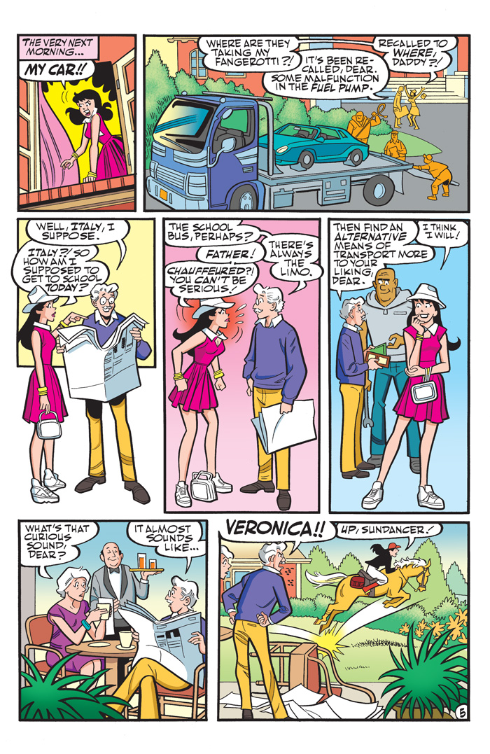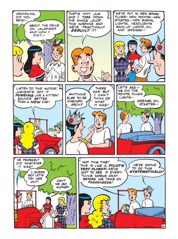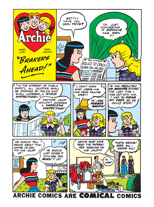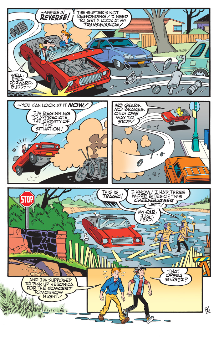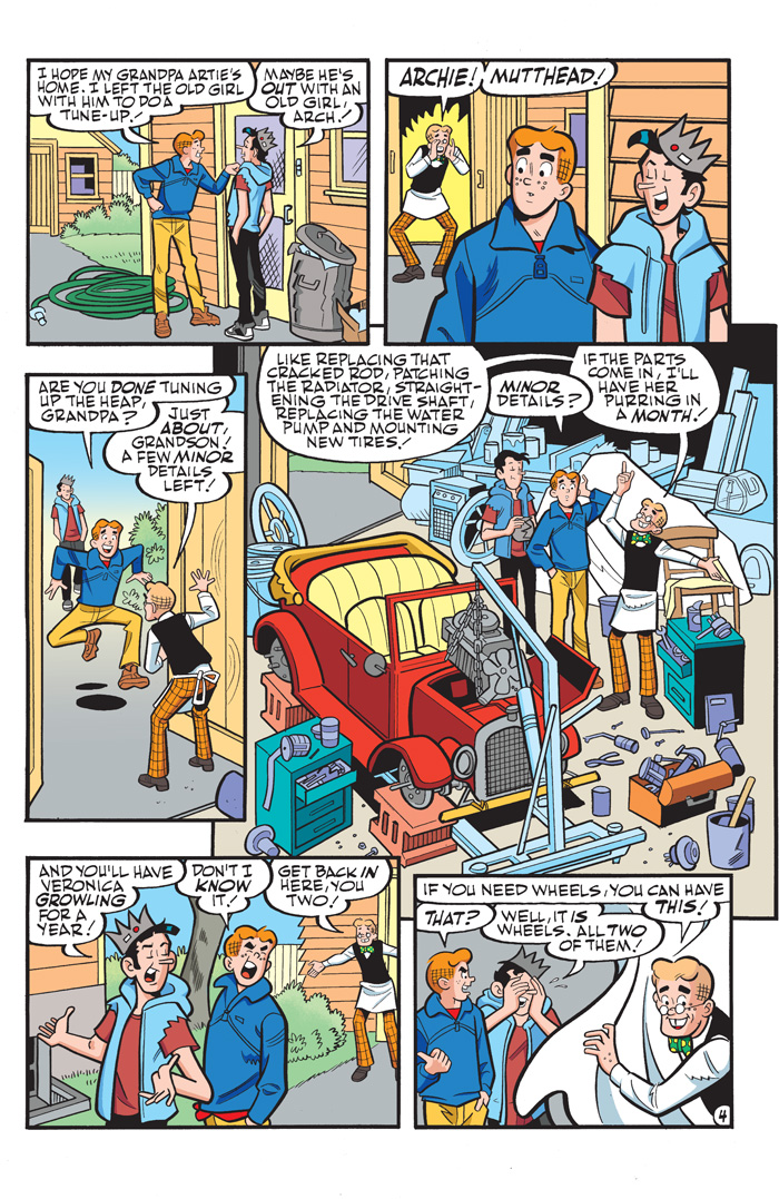 Archie’s car is trusty—you can always count on it to break down! Jughead suggests that Arch trade in his dead beater at the local used car lot, but the best the dealer can offer him is a battered old scooter! It’s walk or ride so Archie has no choice but to take the deal, though he’s not so sure about the “coolness” factor of his underpowered two-wheeler. He’s not looking forward to his new ride being mocked at school—and he’s definitely not looking forward to facing Veronica with his new wheels. Little does he know, Veronica’s having some car trouble of her own. Will Archie’s scooter prove to be cooler than he anticipated? And whose got the crazier ride—Archie or Veronica? The answers await you in this fun new issue of Archie!