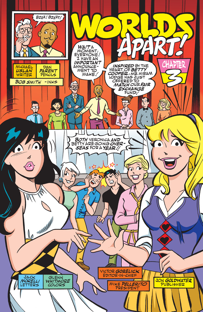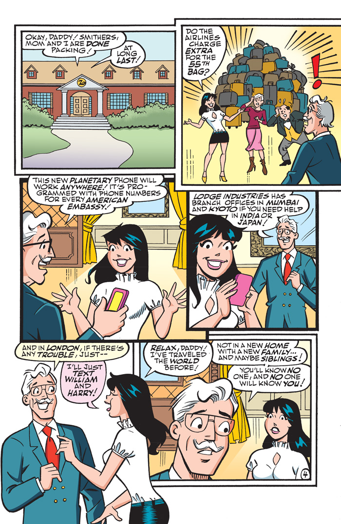 Betty and Veronica are both set to start off on a whirlwind adventure that will take them abroad for a whole semester—and the first leg of their journey is London! Get ready to meet the new families Betty and Veronica will be living with during their stay. How will they manage in this unfamiliar territory? Will they get the excitement they’re looking for? Can they handle both study and play in Europe? When they find themselves falling into the same traps and routines they encountered back in Riverdale, they realize what really needs to change is themselves. See how they make this change PLUS meet the two exchange students taking Betty and Veronica’s place in Riverdale while they’re away!