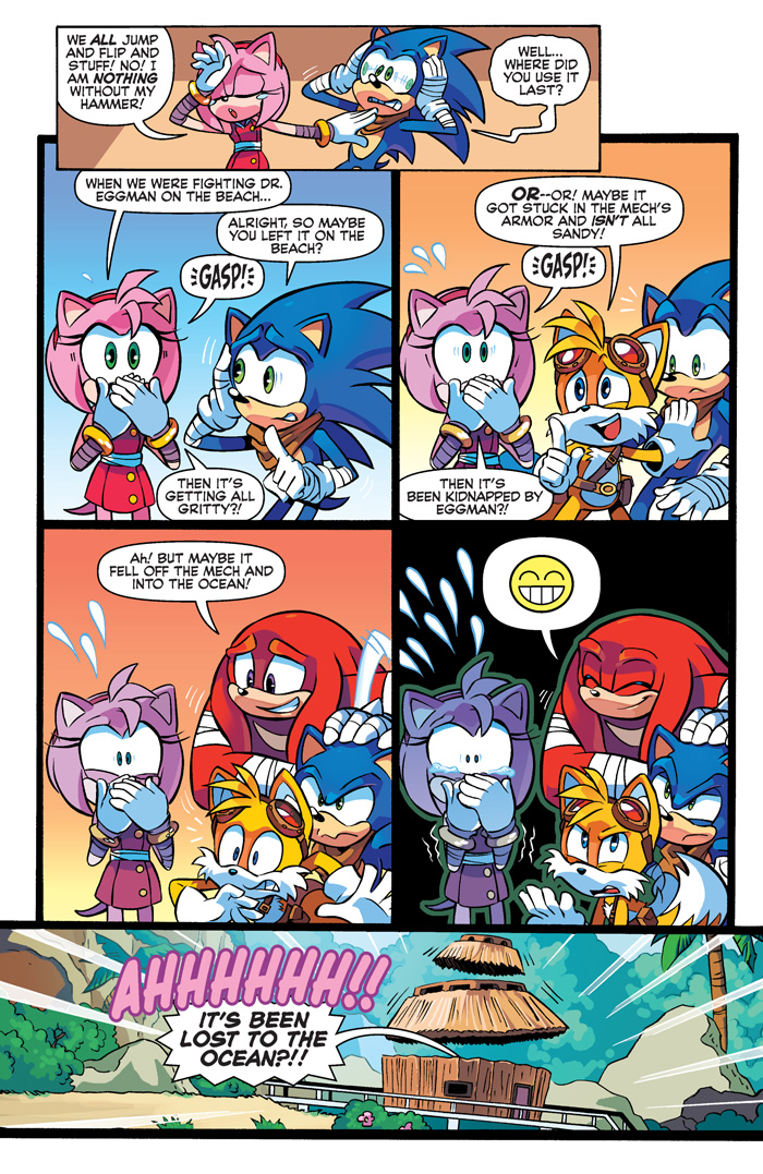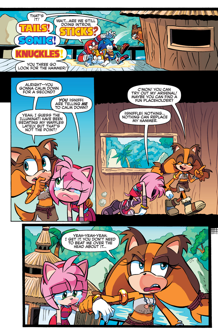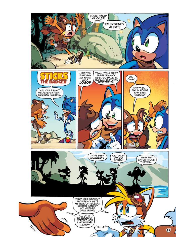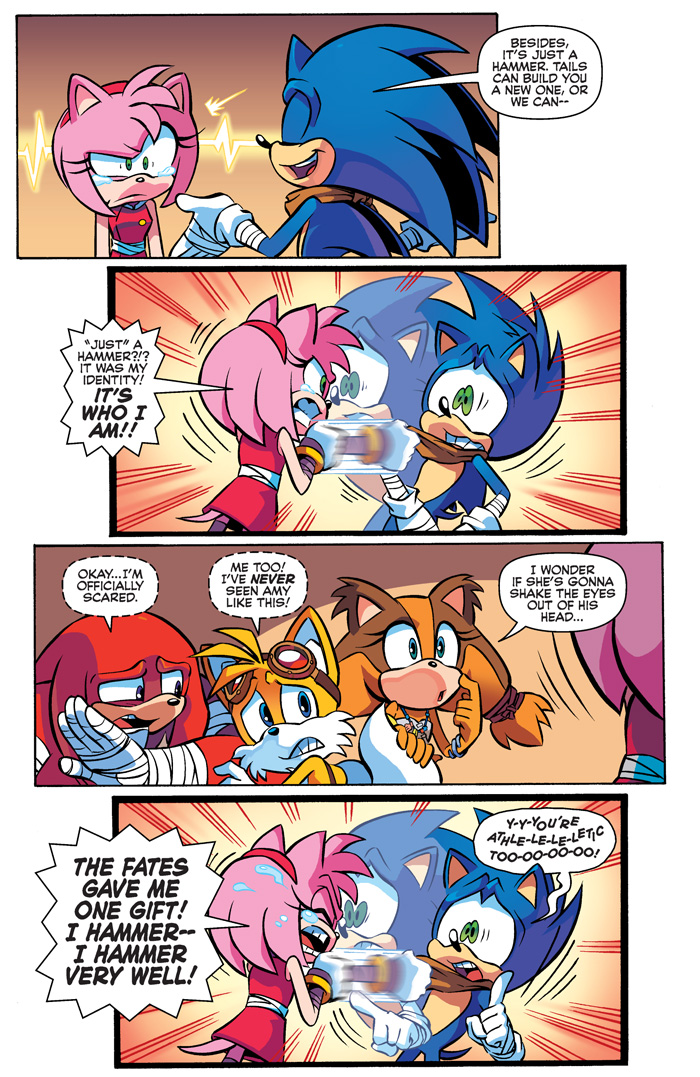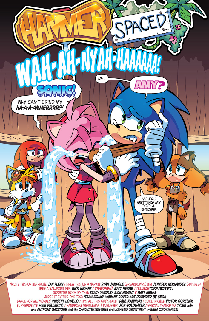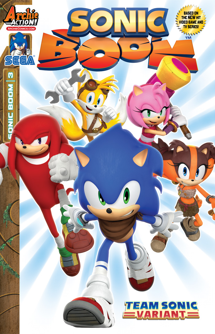 ARE YOU READY FOR THE BOOM?! The NEW ONGOING SONIC COMIC BOOK SERIES from Archie Comics continues its frantic fun with Sonic Boom #3: Hammer Spaced! Amy’s most precious possession, her piko hammer, has gone missing! And if she can’t find it, her hammer won’t be the only thing she’ll lose! While the boys are on a hammer-hunting quest, Sticks tries to show Amy a new arsenal—but will she survive the experience?! Don’t miss the exclusive tie-in comic to the new TV Show and Video Games from Sega, featuring cover art from Sonic comics legend Tracy Yardley and a special “TEAM SONIC” variant edition!