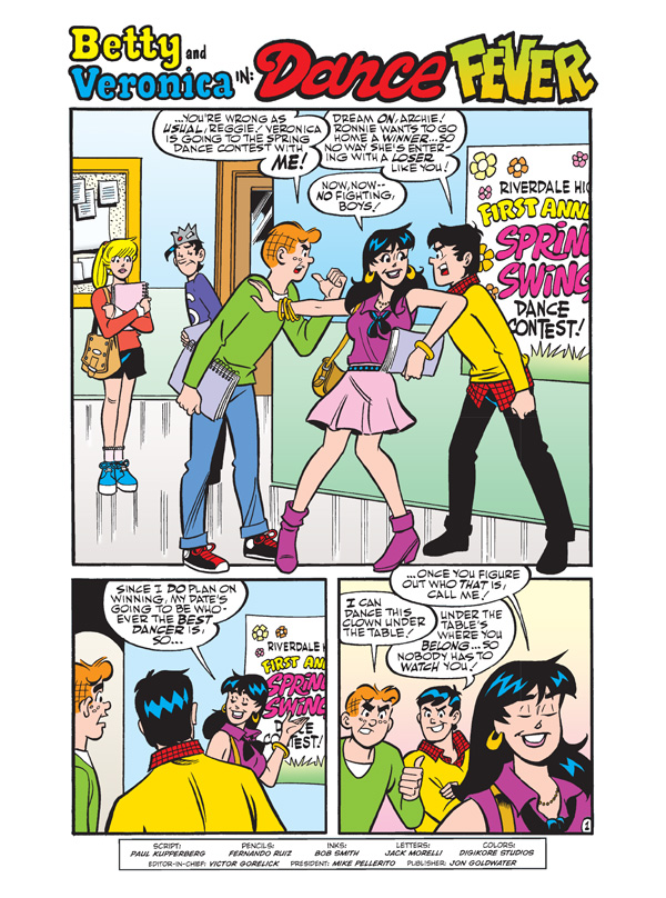 The flowers are in bloom and spring is in full swing… speaking of swing, Riverdale High is hosting a Spring Swing Dance Contest and Veronica’s got her eyes on the prize! But first, she’ll need a partner who has her level of dancing skills. It’s an all-out dance off between Archie and Reggie to see who will swing their way into her heart and win the prize! Find out who wins in “Dance Fever!”