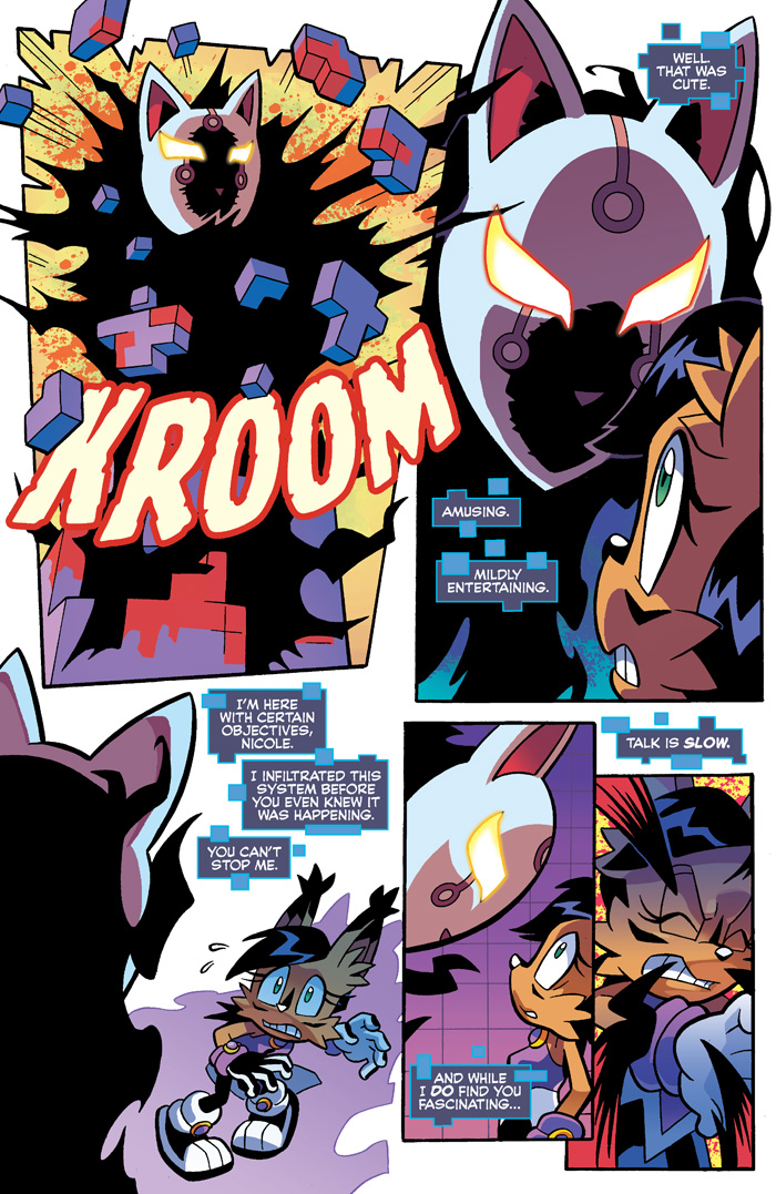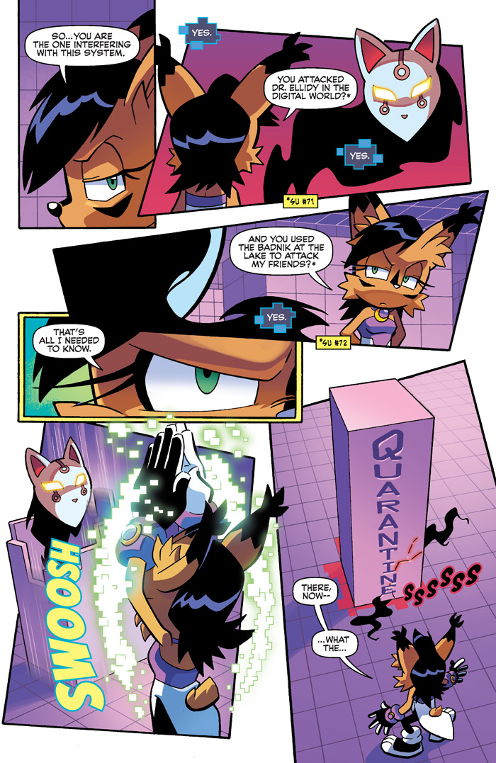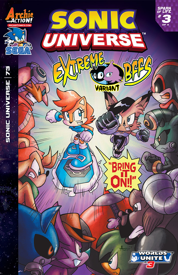 It STARTS with a SPARK! “Spark of Life” Part Three: Shocking truths are exposed as Dr. Ellidy reveals the tragic origin of the beloved A.I., Nicole! Meanwhile, Phage erupts from the shadows of the Digital World to sew chaos on the island! Can our heroes rally to save Nicole and drive off this new threat? Night is falling, and terrible monsters are closing in! Don’t miss this exciting next chapter in the latest Sonic Universe epic, featuring all-new cover art from Sonic artist supreme Tracy Yardley, and a special new “EXTREME BFFs” variant cover from My Little Pony artist Agnes Garbowska!