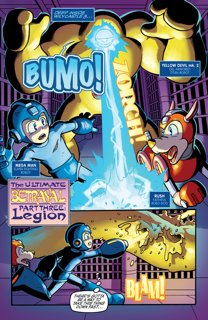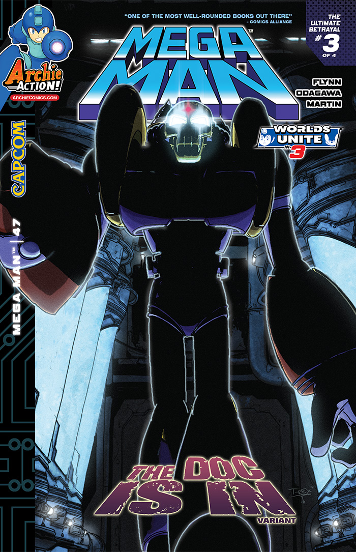 The penultimate chapter to the ultimate Mega Man epic is here! “The Ultimate Betrayal” Part Three: Mega Man must brave the many difficult challenges of Dr. Wily’s newest castle! Awaiting Mega Man in the trapped-filled halls of the ferocious fortress is the vicious and super-powerful Doc Robot! After seeing the pure destruction from this ferocious machine at Light Labs, does our hero even stand a chance? Or is the dreaded Doc Robot truly unstoppable?! The answers to these questions and more, plus cover art from the legendary Patrick “SPAZ” Spaziante and a special new variant cover from fan-fav T.REX, all in this latest MEGA-issue!