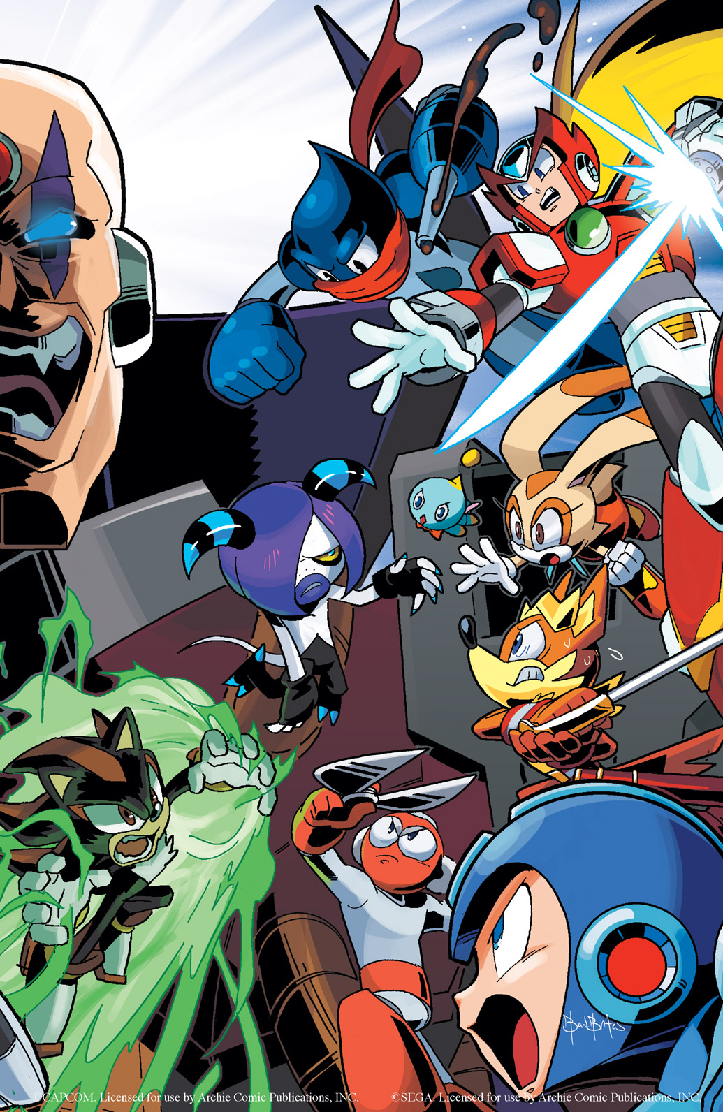 It slices! It dices! It joins line-wide crossover events: it’s SONIC BOOM! “Sonic/Mega Man: Worlds Unite” Part Two: It was just another day at the races—y’know, the ones with the giant spider-mechs? Things start to get weird, even for the lovable, paranoid Sticks, when X and the Maverick Hunters arrived! Meanwhile, the epic bromance of the century is rekindled as the captured Drs. Eggman and Wily are forced to turn their life-long nemeses—Sonic and Mega Man—into minions for the terrifying Sigma! After the history-making “WORLDS COLLIDE” crossover event, Sonic the Hedgehog and Mega Man unite once more—and this time Sonic Boom and Mega Man X are joining the fray! Featuring cover art from the legendary Patrick “SPAZ” Spaziante, a special “happy fun time crossover” variant by Ryan Jampole and part 2 of the epic 12-part connecting variant cover series by artist Ben Bates!