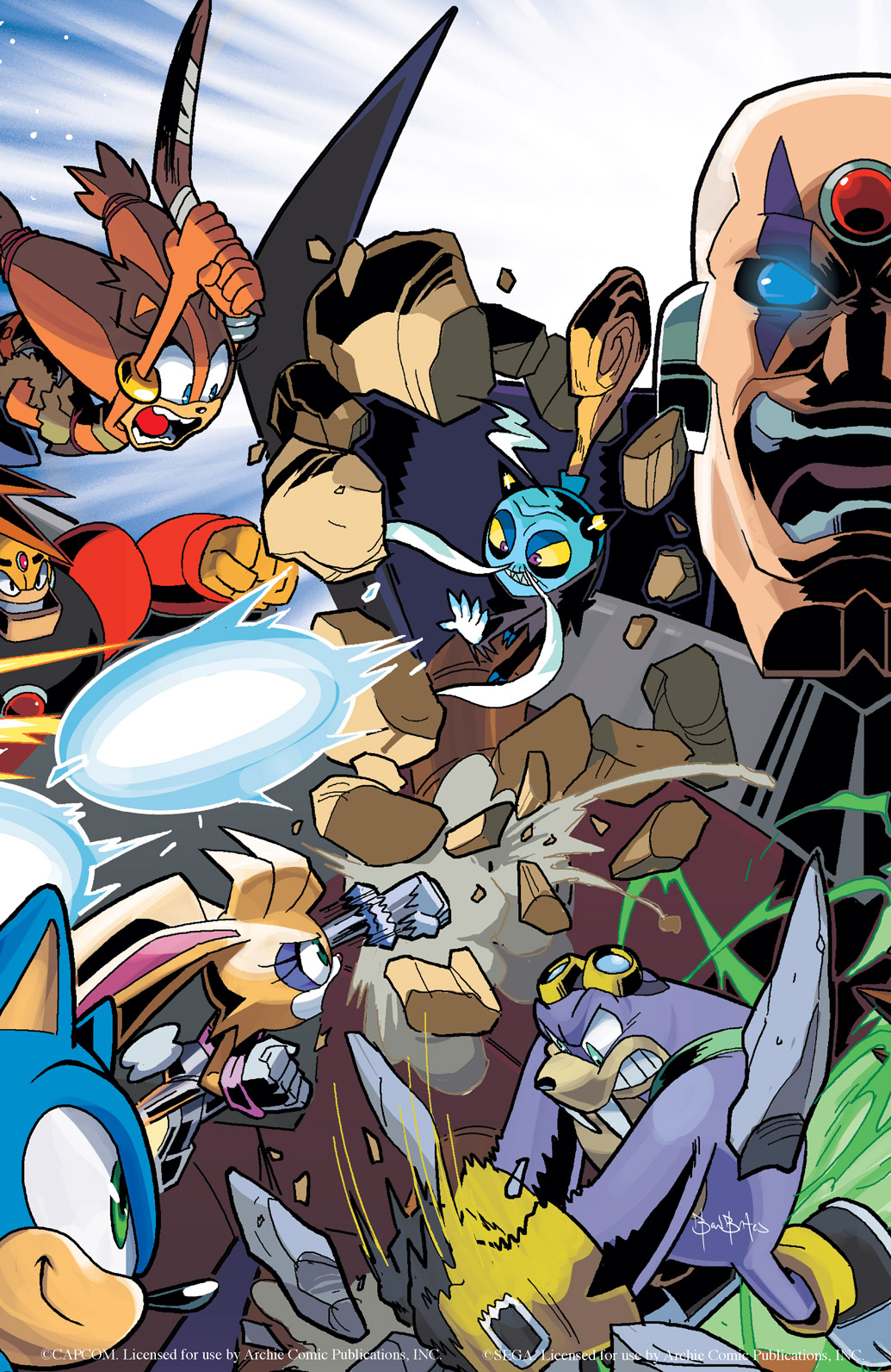 THE SONIC/MEGA MAN CROSSOVER EVENT BEGINS HERE! It’s the epic first chapter of the biggest story in Sonic/Mega Man comic book history with “Worlds Unite” Part One! Get ready for cross-world treachery as the wicked Sigma escapes the world of Mega Man X and arrives in Dr. Eggman’s secret Lost Hex base! When Sigma promises new power to the Deadly Six, how long do you think they’ll stay loyal to Dr. Eggman? We’re not betting for long! And just where exactly are our heroes during all this? Looks like Sonic and Mega Man are right in the middle of an ambush! The sense-shattering sequel to “Worlds Collide” starts right now! Featuring cover art from the legendary Patrick “SPAZ” Spaziante, Rafa Knight, and part 1 of the epic 12-part connecting variant cover series by artist Ben Bates!