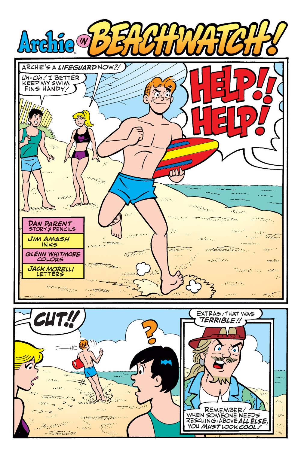 Get ready for fun in the sun with Archie and his pals ‘n’ gals! This new issue of ARCHIE AND FRIENDS features an epic beach party with an unexpected guest, a water skiing mishap, a beach movie starring none other than Archie Andrews… and more in this collection of classic-style summer stories!