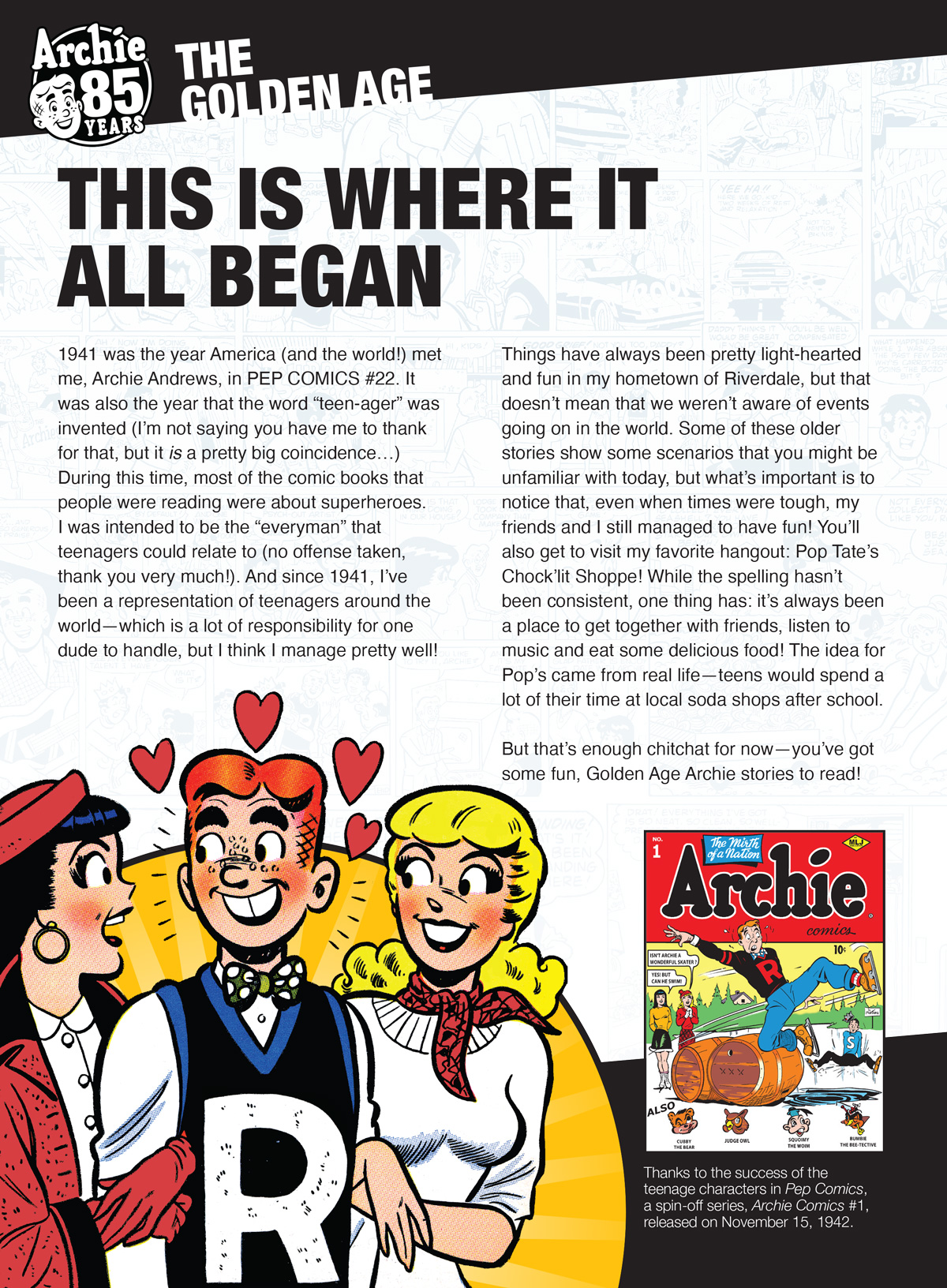 It’s not every day that you can score your very own Archie #1. Well, today’s that day as we launch a new bi-monthly magazine packed with classic comics arranged in fun themes — and that’s just for starters! Each 100+ page issue has editorial features about iconic characters and key moments in Archie history, as well as puzzles, gags, pin-ups, and more. It’s everything Archie, and it starts right here.