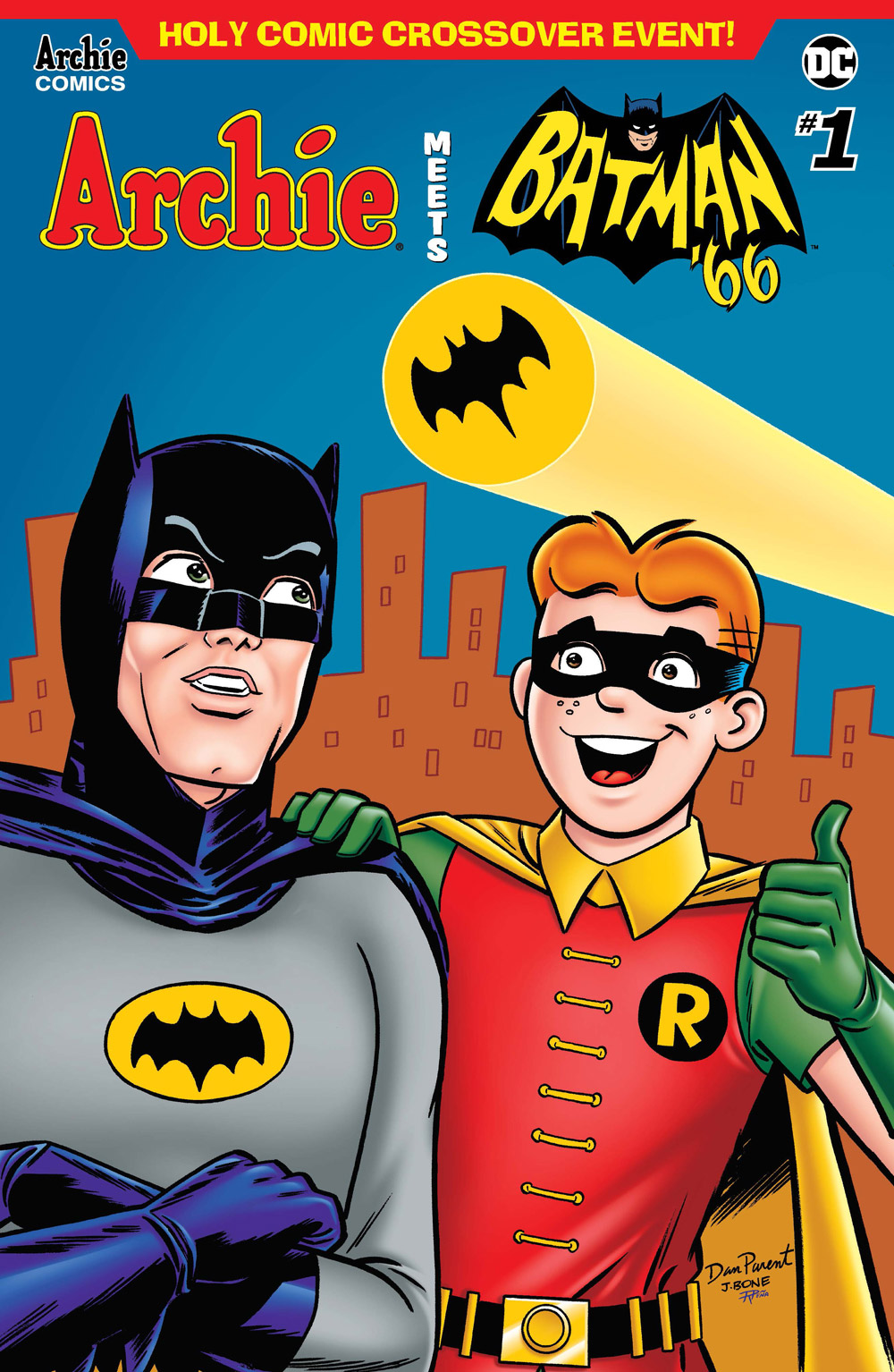 On July 18th, join the titanic talents of co-writers Jeff Parker and Michael Moreci, artists Dan Parent and J. Bone, colorist Kelly Fitzpatrick, and letterer Jack Morelli and gear up for comic crossover fun in ARCHIE MEETS BATMAN ’66 #1!