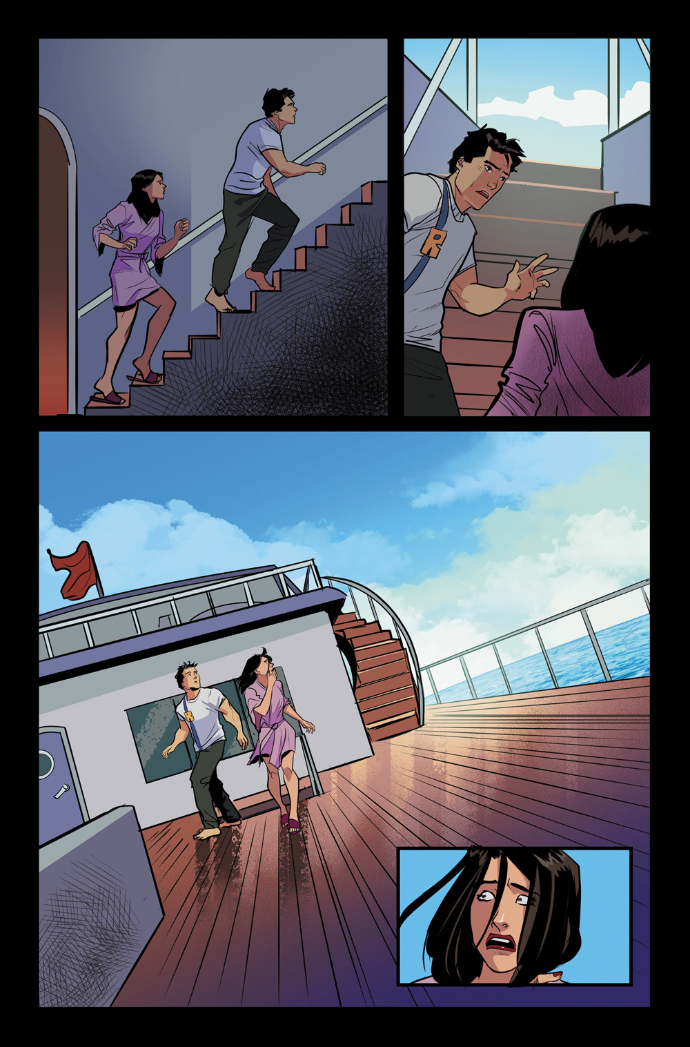 In the fourth issue of the Riverdale Season 3 tie-in comic mini-series, novelist Micol Ostow and artist Thomas Pitilli detail a clandestine meeting between Betty Cooper and Gladys Jones, while Ostow and artist Joe Eisma uncover Veronica and Reggie’s romantic retreat-turned-nightmare on her father’s boat!