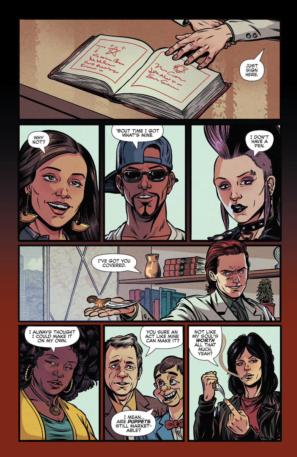 Bingo had seemingly turned the tables, but in today’s follow-up comic, THE CULT OF THAT WILKIN BOY: INITIATION, we see he’s not exactly where he wants to be — he’s a music manager, signing up more souls for the bad guys, and he has an ache to get back on stage. With comics horror master Cullen Bunn writing, you know one thing for sure: you won’t know where this show is going until you get there! Artist Dan Schoening returns on art, as well, so this is one for every Archie Horror collector. You can start reading with the preview below, then get your own chart-topping copy right here!