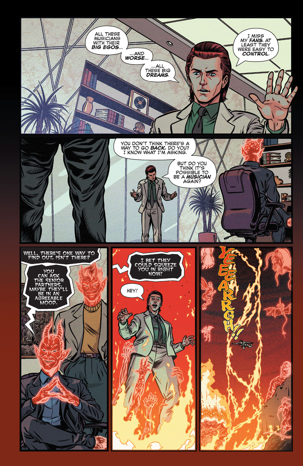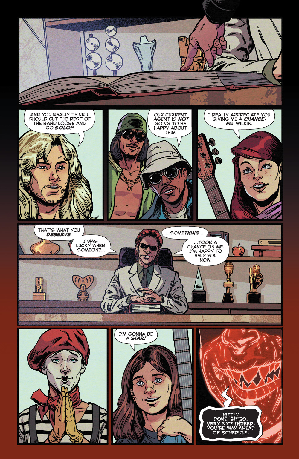 When we last checked in with Archie Horror’s version of Bingo Wilkin, in last year’s sold-out hit one-shot THE CULT OF THAT WILKIN BOY, he was at the peak of rock superstardom, but at what cost? He’d made a deal with some infernal businesspeople, and that never turns out well.
