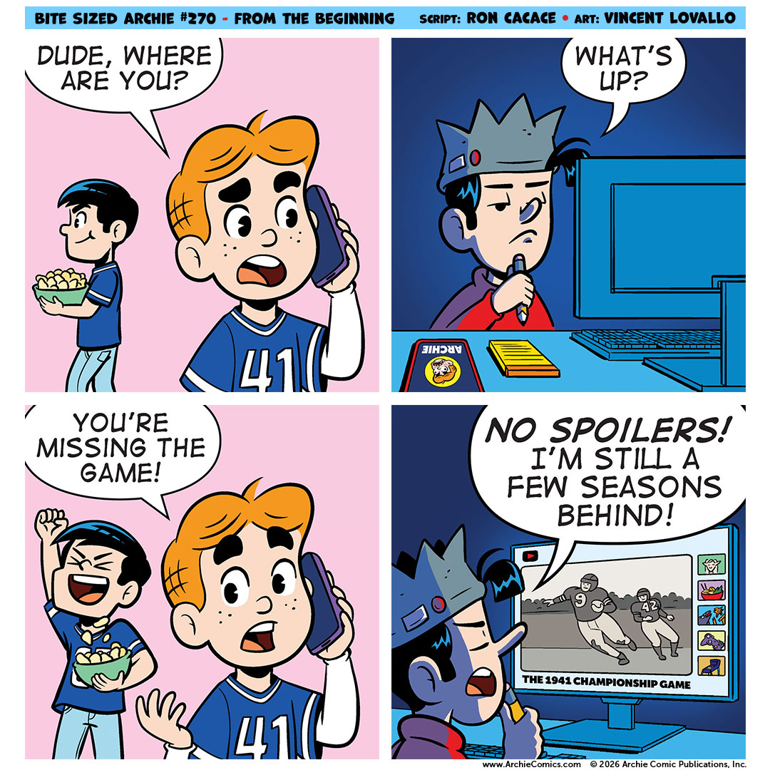 BITE SIZED ARCHIE is written by Ron Cacace and drawn by Vincent Lovallo. Check back every Friday for a new comic and follow @ArchieComics on Twitter for updates! Read every BITE SIZED ARCHIE comic on Tinyview!