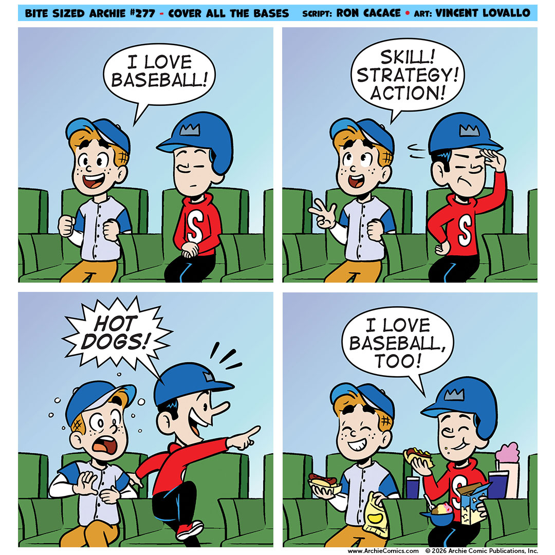 BITE SIZED ARCHIE is written by Ron Cacace and drawn by Vincent Lovallo. Check back every Friday for a new comic and follow @ArchieComics on Twitter for updates! Read every BITE SIZED ARCHIE comic on Tinyview!