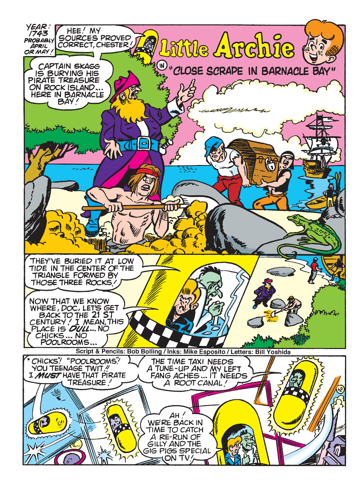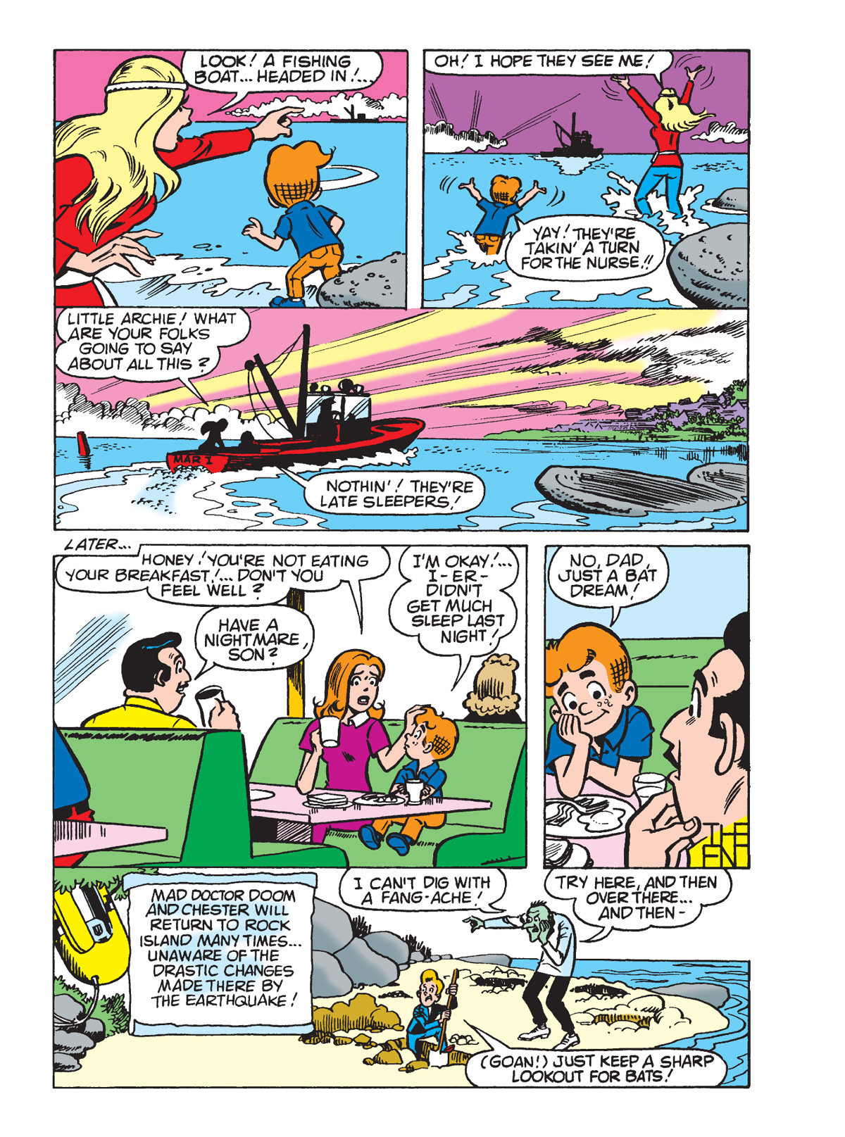 You can preview those below, along with the complete Bob Bolling Little Archie classic, “Close Scrape in Barnacle Bay,” and then grab your own copy right here. And have a comics-filled weekend!
