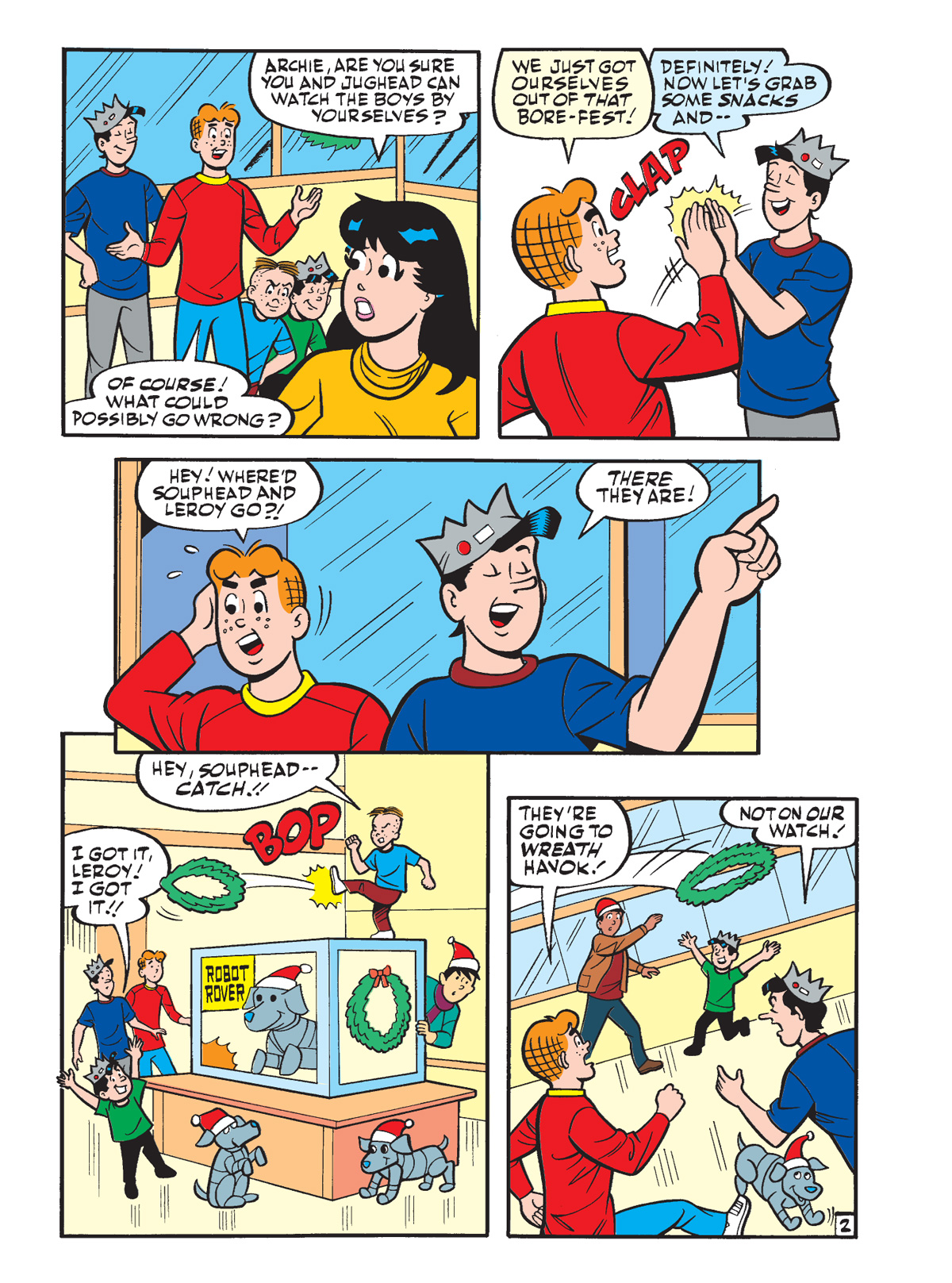 Holiday shopping (a.k.a. babysitting) goes haywire when the Jones kids are let loose at the mall in ARCHIE JUMBO COMICS DIGEST #335!