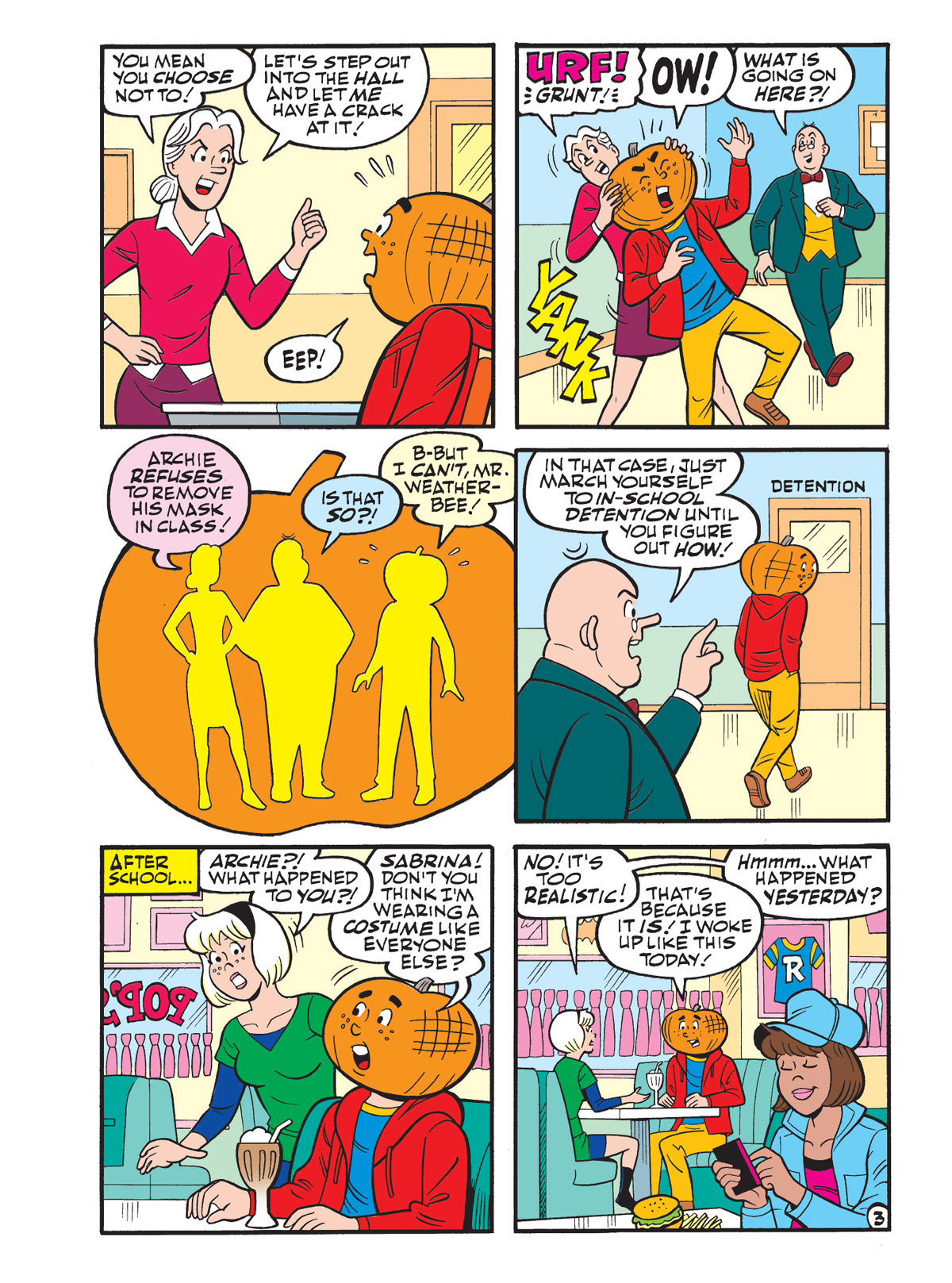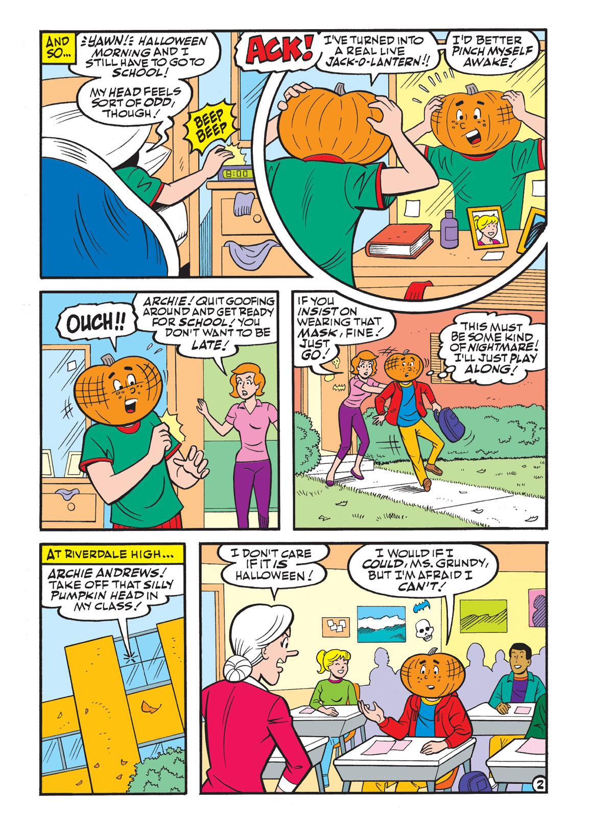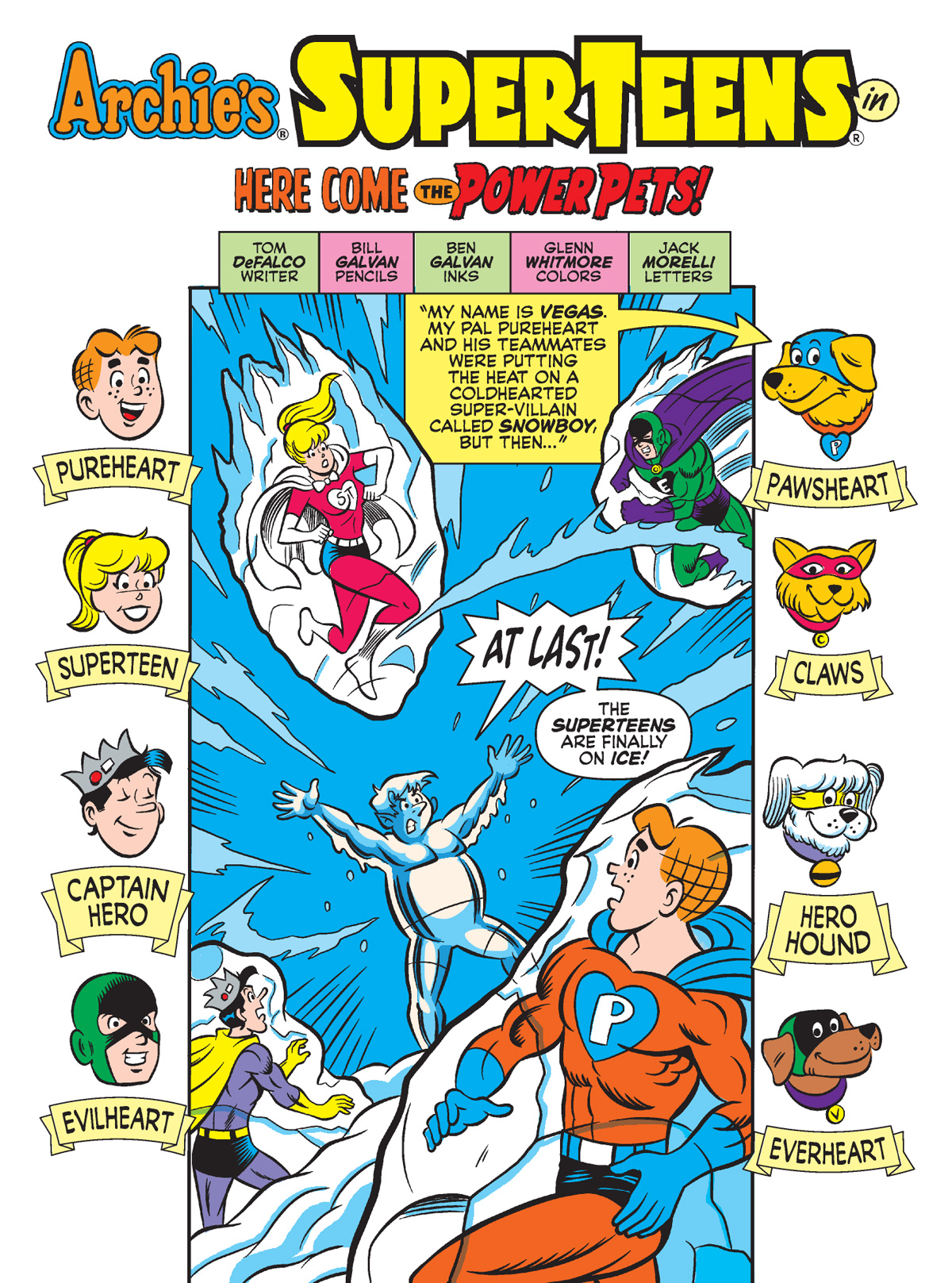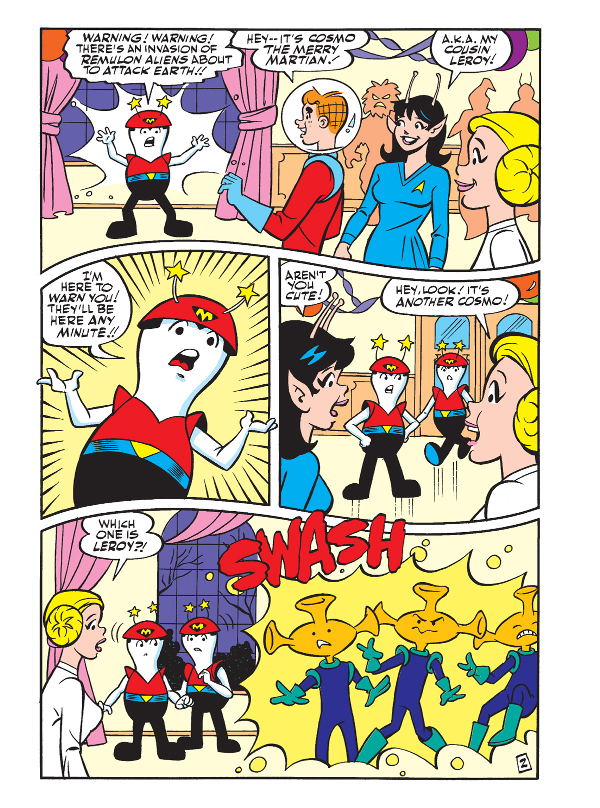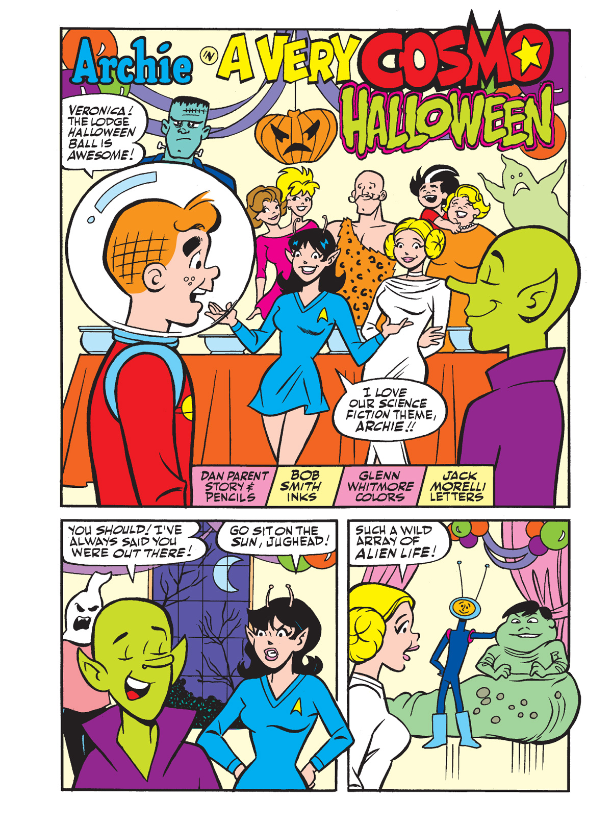 We all love the thrills of Cosmo the Martian’s MIGHTY new adventures in his latest graphic novels, but did you know Cosmo started off as the Merry Martian back in 1950? Well that little guy is back today in ARCHIE JUMBO COMICS DIGEST #334 an all-new story by Dan Parent. And that’s not all! Comics super-legend Tom DeFalco pens a brand-new tale of Archie’s SuperTeens, this time starring their superpowered pets. Sneak a peek at both of those below, along with a full classic Halloween story by Bill Golliher and Bill Galvan, and grab your copy right here!