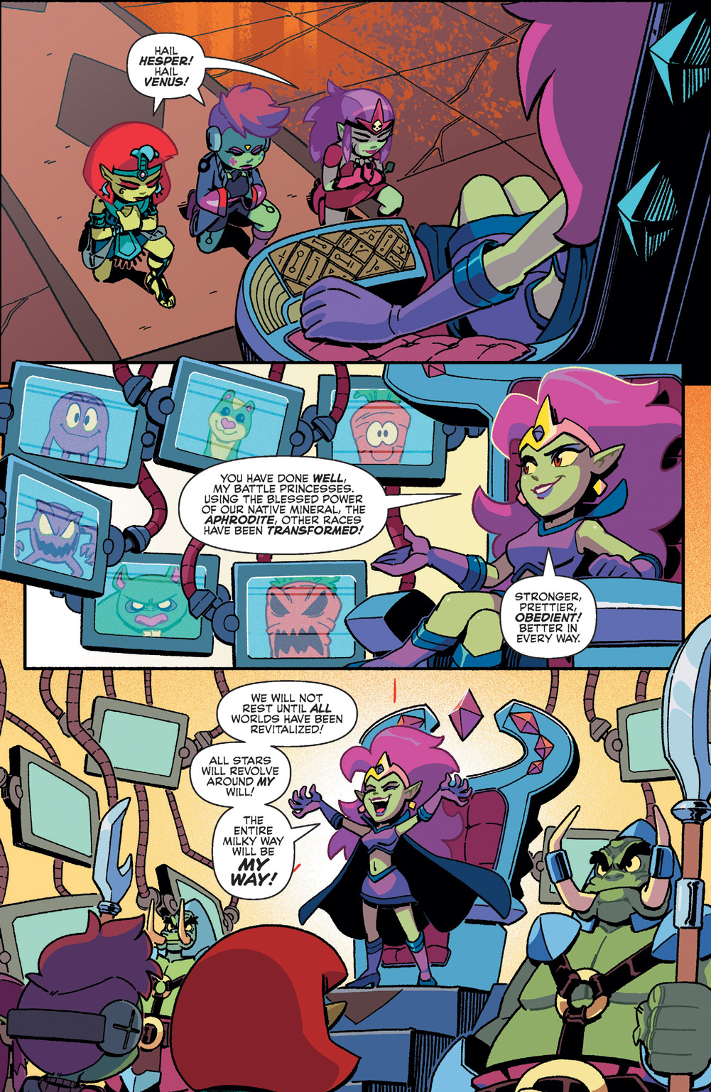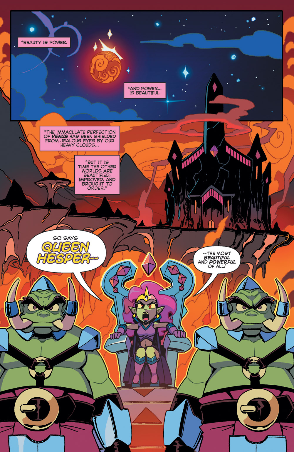 Cosmo and Astra investigate a planet of spooky shadows, little do they know it’s actually an ambush led by one of the evil Venusian Battle Princesses, Boudica! Can the pair overcome the devious dark devils, or will they be overshadowed by the barbarous battling Boudica?!