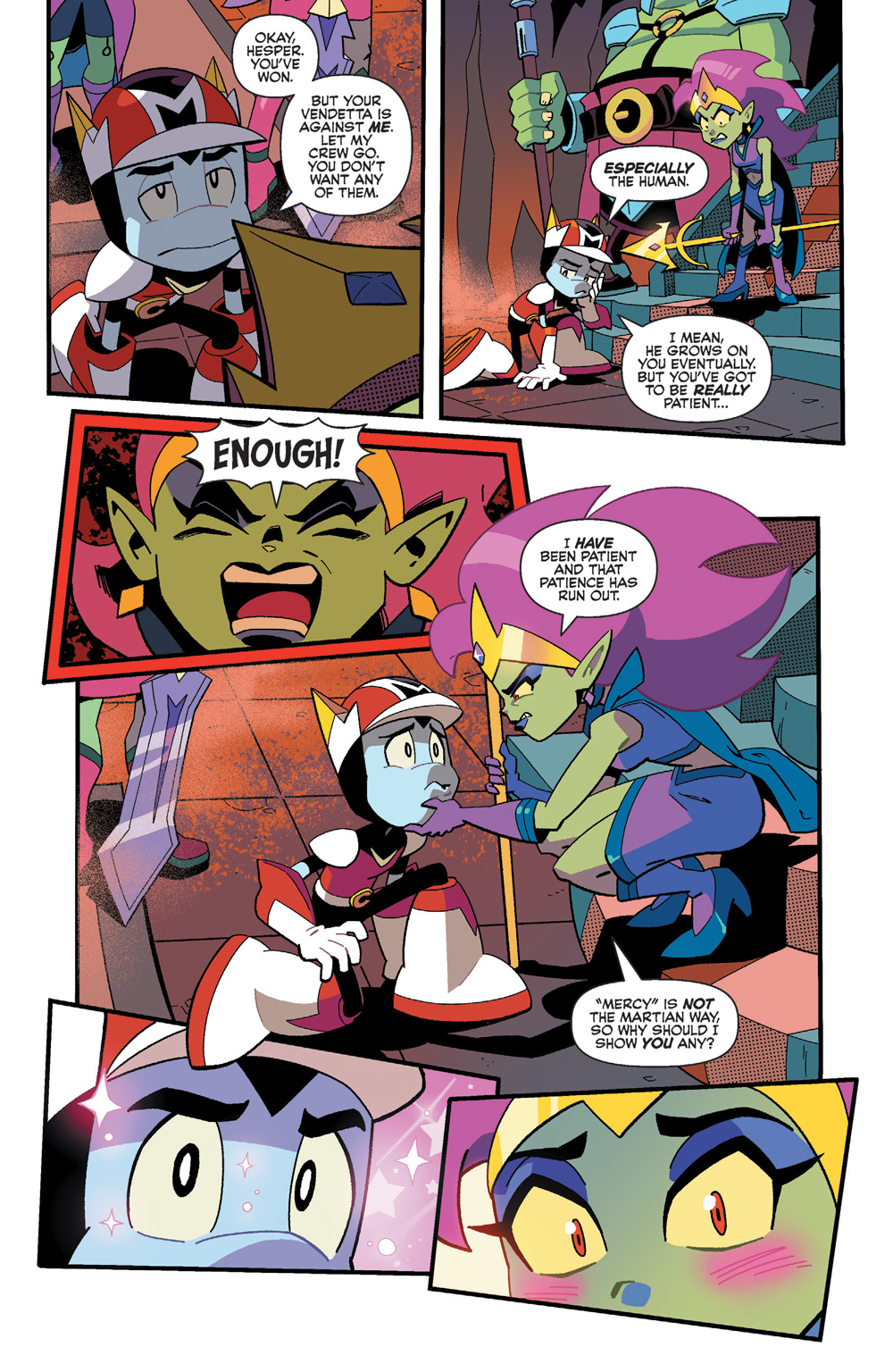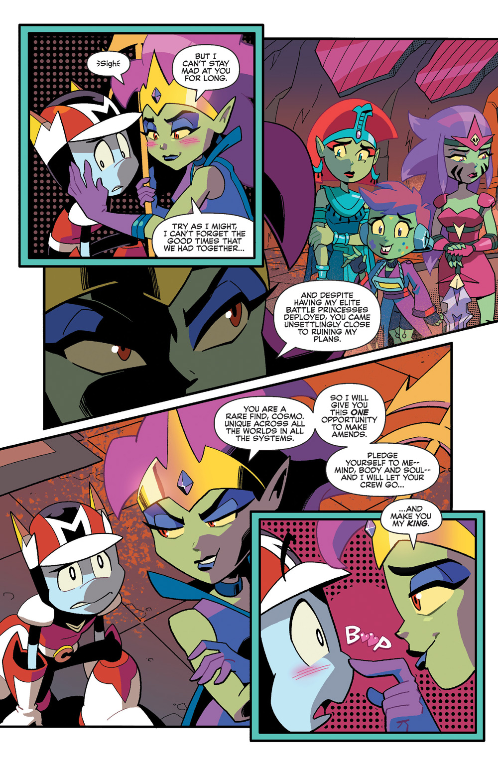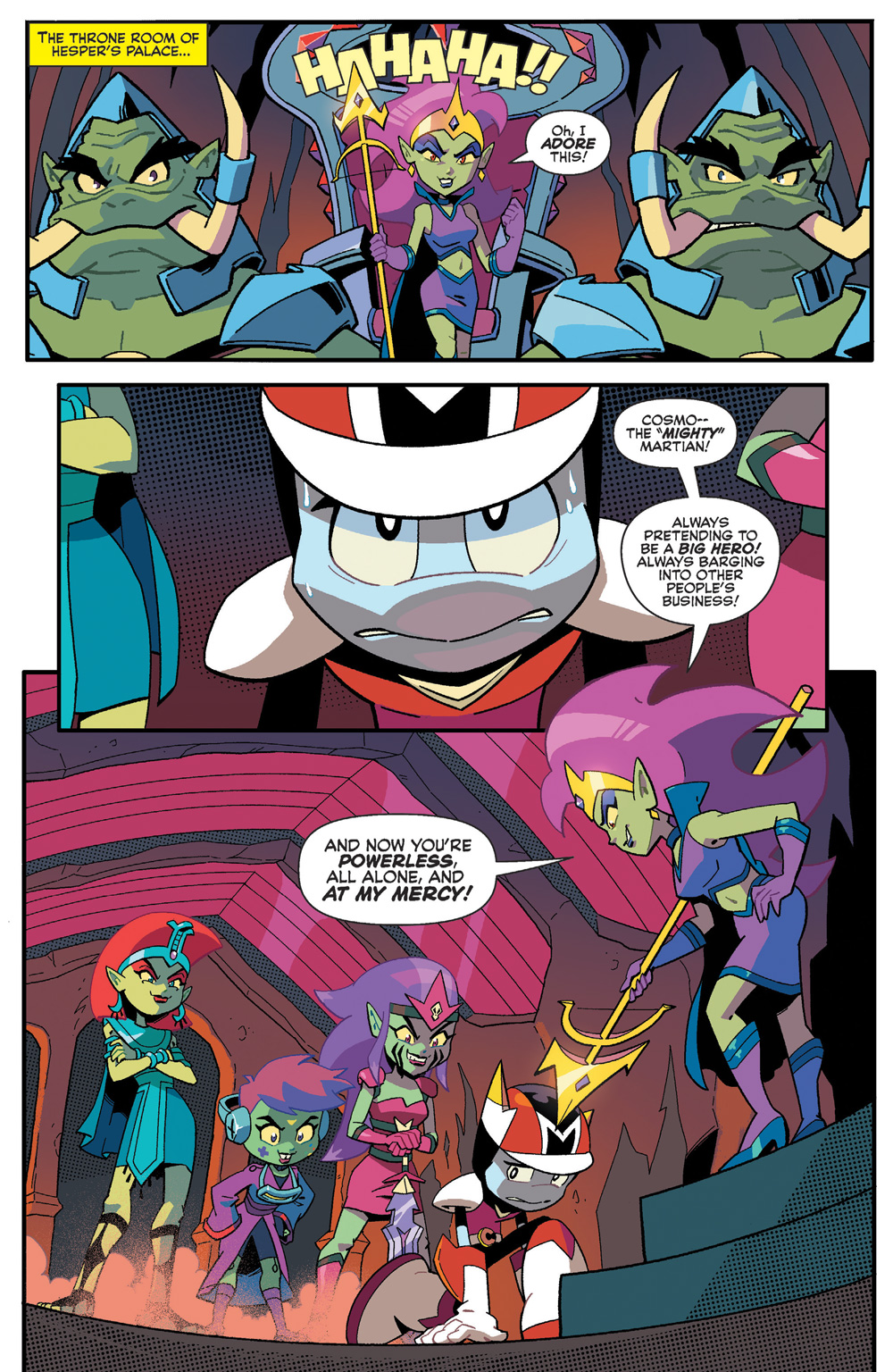 The Martian crew has been captured by the Venusian Queen Hesper and her Battle Princesses! Cosmo is faced with a difficult choice when Hesper offers him a position of power as her loyal King in exchange for the release of his friends! Will Cosmo prove himself to be the mightiest Martian?! The confrontation on Venus ends here!