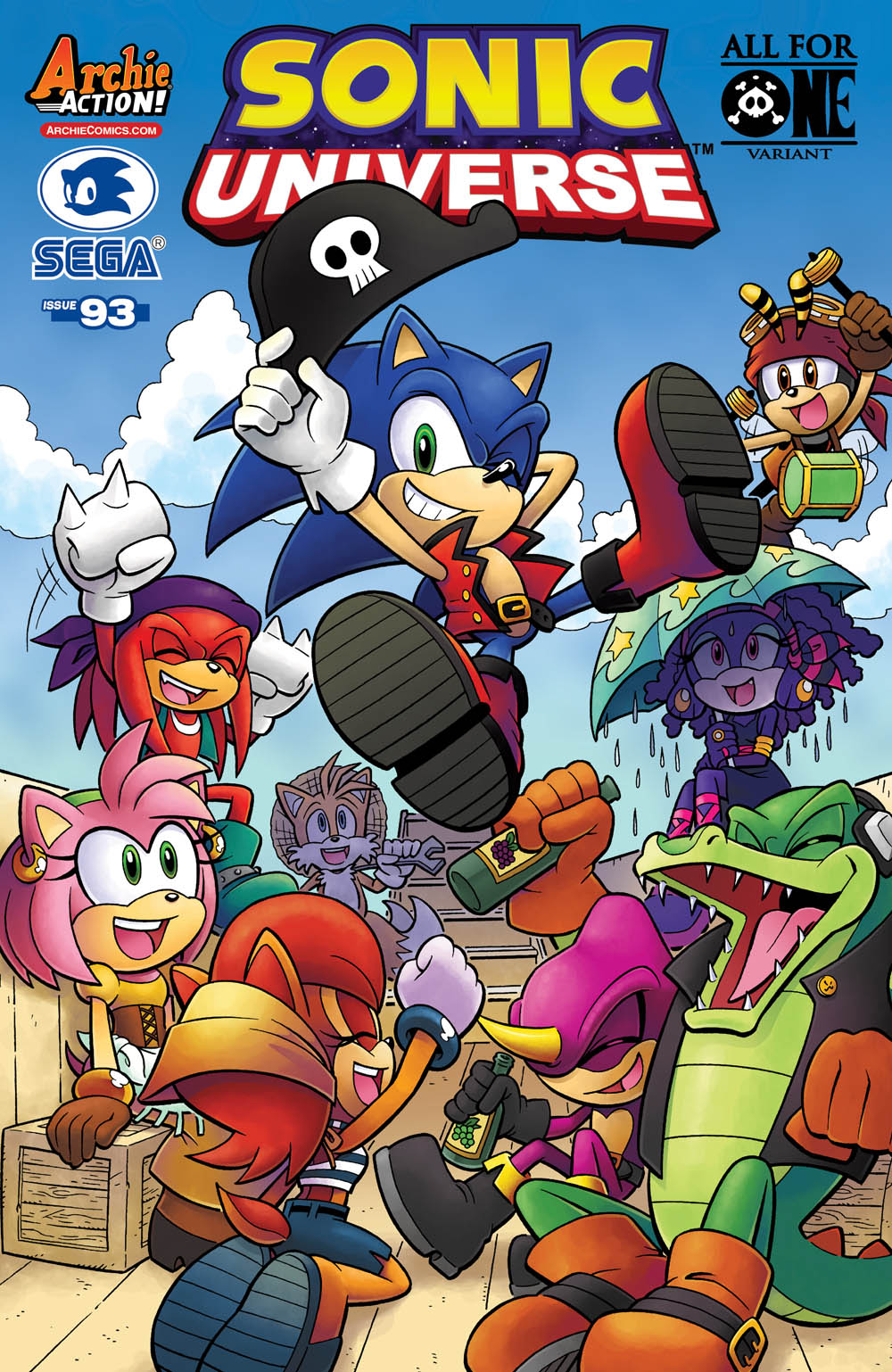 The quirky trio of detectives return in “The Case of the Pirate Princess” Part Three: Say it ain’t so – have the Chaotix gone full pirate?! Tensions run high as loyalties are tested and pasts are explored. And as the crew reaches their destination, will it be treasure they find – or something more sinister? Featuring cover art by Sonic comics extraordinaire Tracy Yardley and a “One for All” variant by super-talent Jennifer Hernandez!