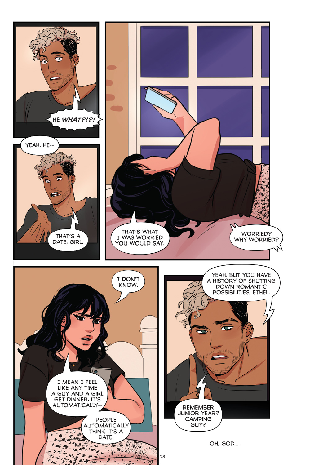 The perfect keepsake for Ethel fans, the snappily designed paperback collection of the hit WEBTOON series looks great on bookshelves and features a peek behind the scenes at how the strip was made. This one kicks off with Ethel and a special someone testing out their budding romance . . . no spoilers here if you haven’t caught up with Volume 1, but we’re rooting for these two!