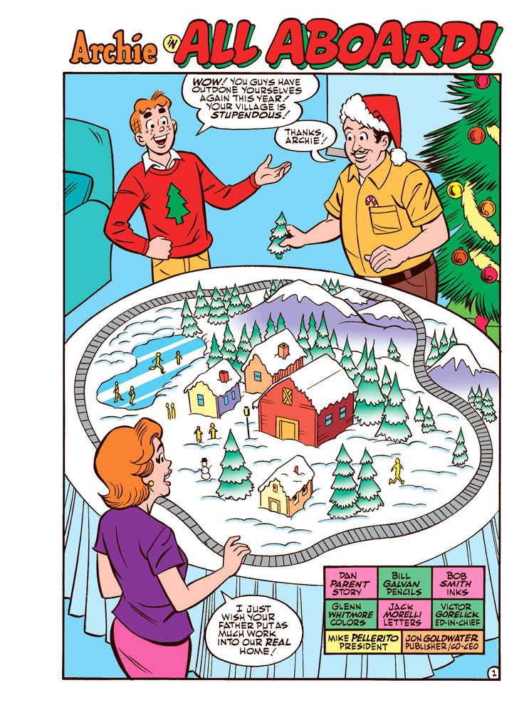 In the festive BRAND NEW story “All Aboard,” Archie wants to get his parents a model train for their holiday village display—unless his plans get derailed!