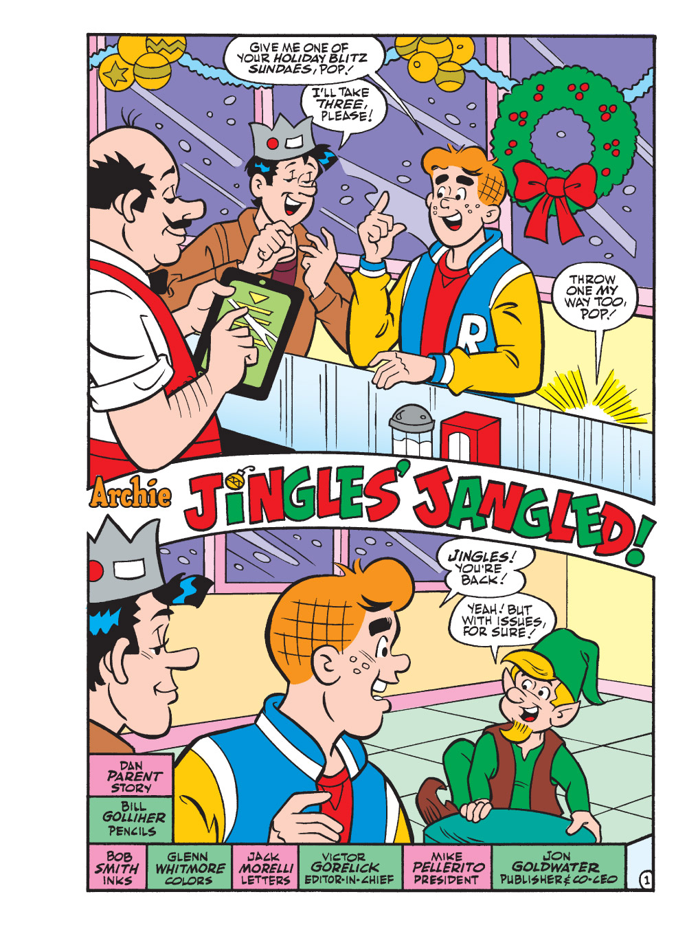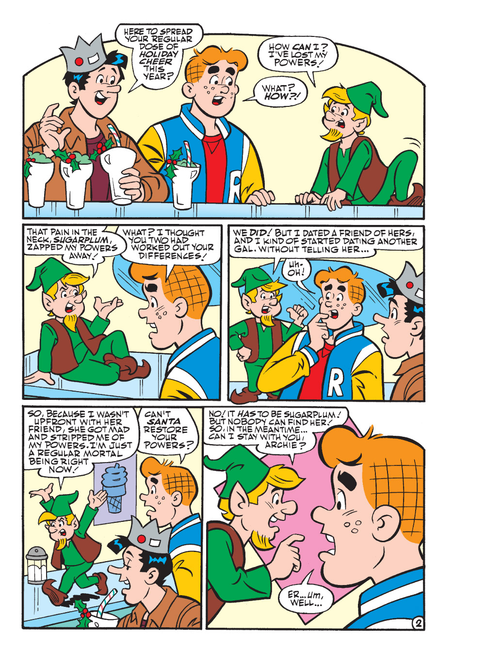In the BRAND NEW holiday story “Jingles Jangle,” Jingles the elf loses his holiday powers due to a spell cast by Sugarplum—so his only choice is to take up residence with Archie!