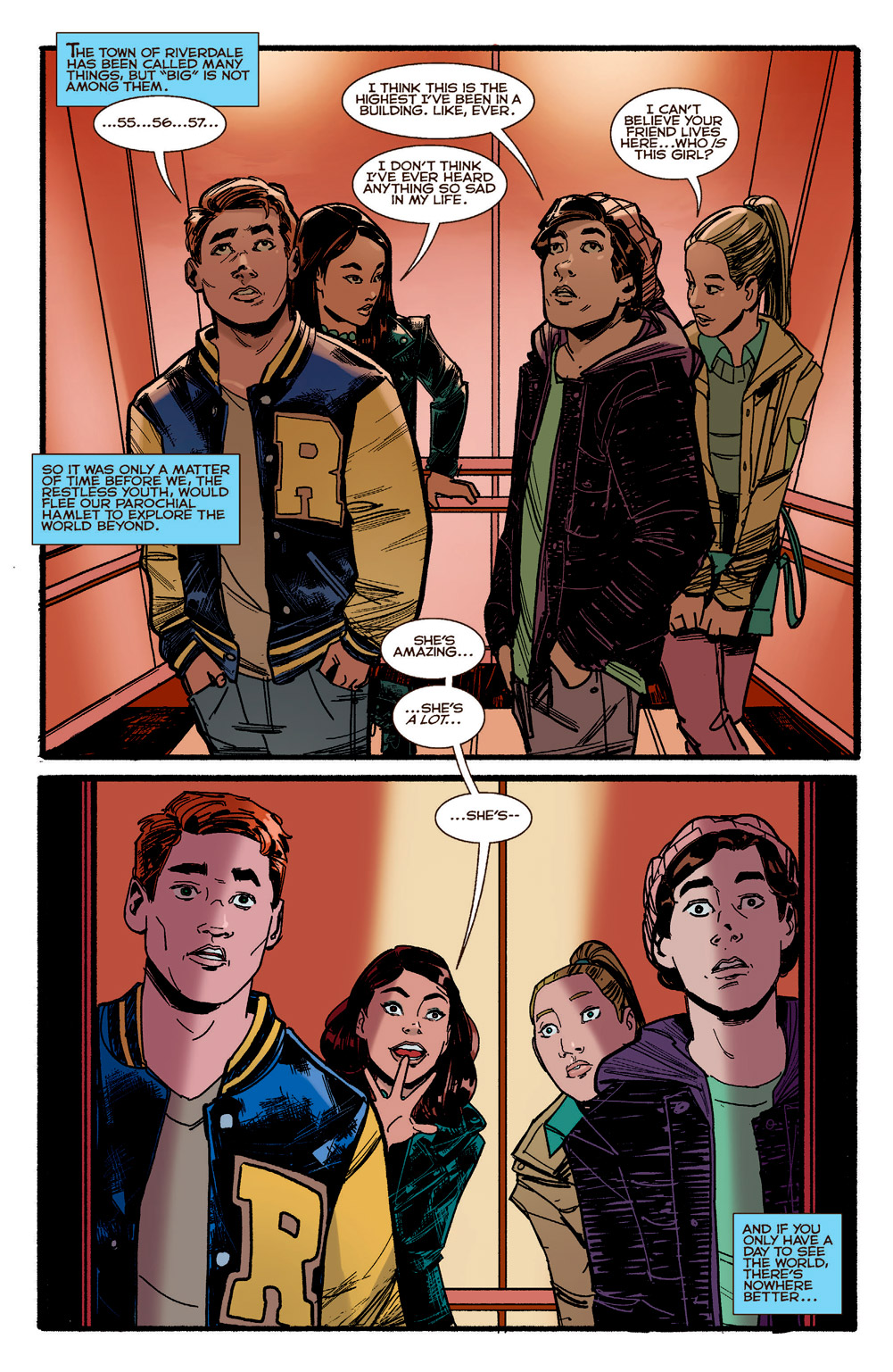 Small town kids get a taste of big city life when the “core four” go to NYC for the weekend. Archie tries to keep up with Veronica’s high society pals, Betty and Jughead worry that their relationship may not survive outside the bubble of their hometown, and Kevin and Cheryl don’t intend to miss out on a day of mischief in the Big Apple…
