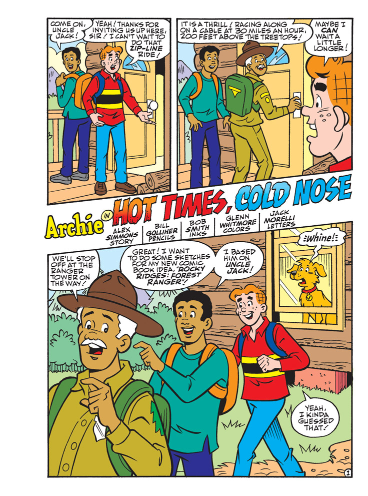 It’s the best of Archie’s all-new classic-style stories for one low price! This inaugural issue features two stories filled with adventures in the great outdoors and mix-ups on the runway! In “Hot Times, Cold Nose,” Archie and his dog Vegas are spending a weekend in the woods—but when Vegas goes off to has his own wilderness adventure, will he make it back to his owner? Then in “Run Away Runway,” the Veronica Lodge/Sheila Wu Fashion wars are in full swing, and the school career week projects have brought it to a head! When Veronica tricks accident-prone Archie into helping Sheila out with her runway project, it’s sure to be a fashion catastrophe!