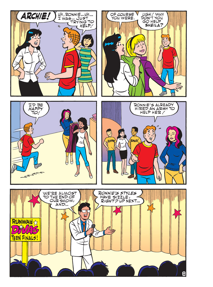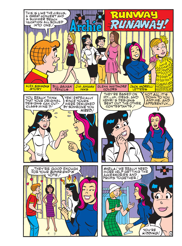 BRAND NEW LEAD STORY: “Run Away Run Way” – The Veronica Lodge/Sheila Wu Fashion wars are in full swing, and the school career week projects have brought it to a head! When Veronica tricks accident-prone Archie into helping Sheila out with her runway project, it’s sure to be a fashion catastrophe!