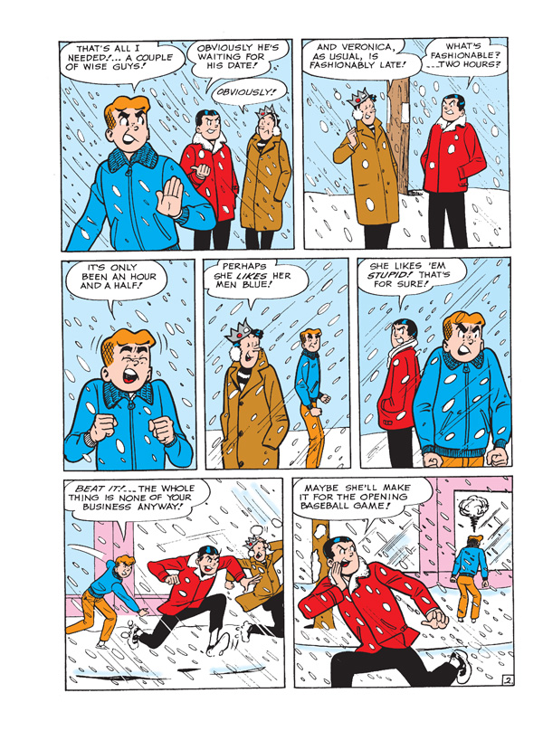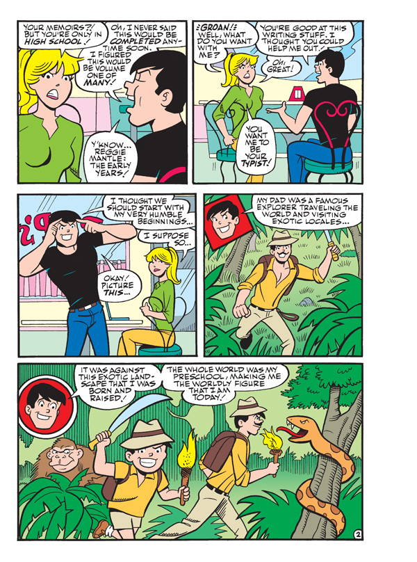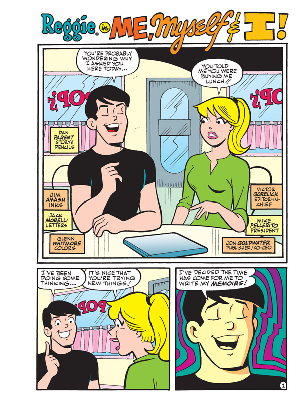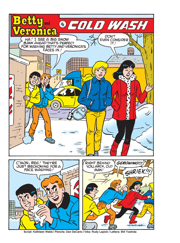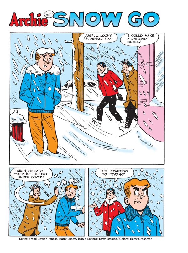 There’s a whole world of Archie comics out there, and you can find some of the best and most hilarious winter-themed stories right here! Check out OVER 190 pages of fun, with a BRAND NEW LEAD STORY! In “Me, Myself and I,” Reggie decides to write his memoir and enlists Betty to help him. When he realizes he doesn’t have much to write about, he gets creative…very creative…