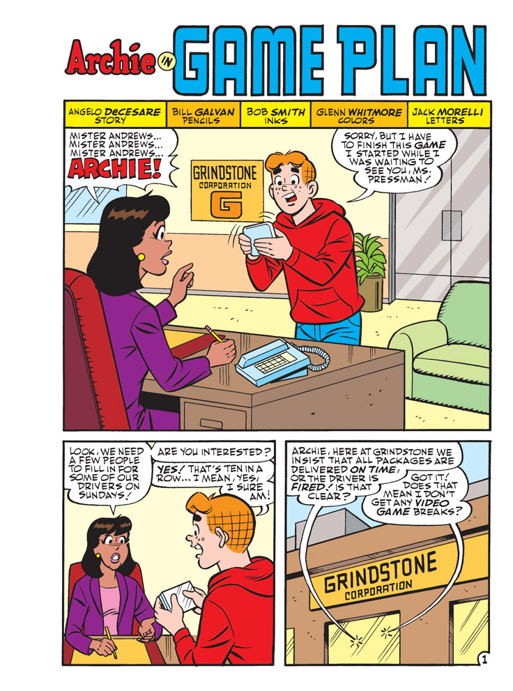BRAND NEW LEAD STORY: “Game Plan.” Archie’s new job is seriously interfering with his video game time—unless he can find a way to merge the two!
