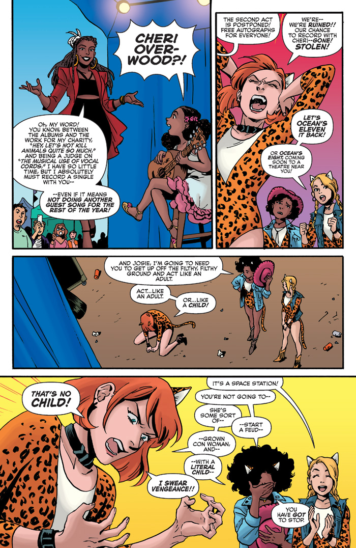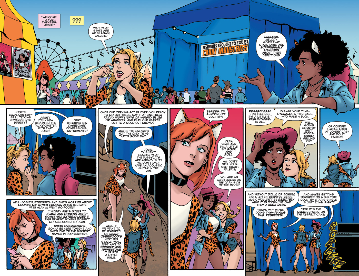 Josie and the Pussycats play at a State Fair! Josie has her sights set on recording with famous country star Cheri Overwood—but a newcomer to the music scene, Felicity Mountain, has stolen the Pussycats’ spotlight. The girls might just miss their chance at the big time, unless Josie, Valerie and Melody can unearth the shocking truth about the Felicity!