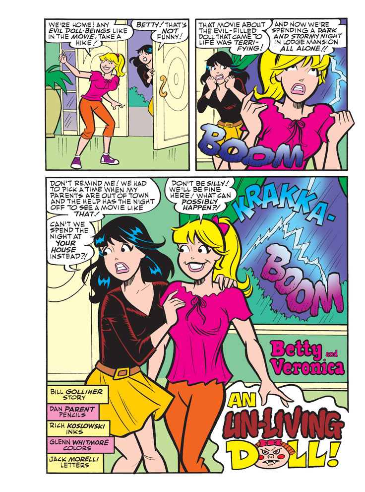 BRAND NEW LEAD STORY: “Un-Living Doll!” A scary late-night movie leaves the girls on edge when they spend a stormy night alone with their imaginations in the Lodge mansion.