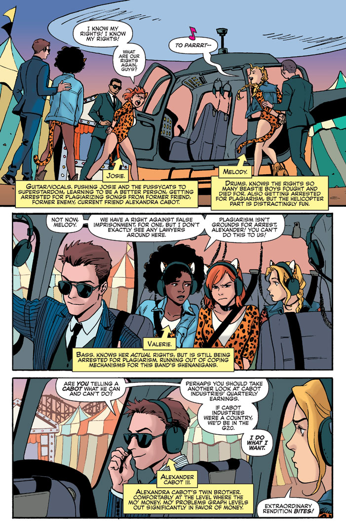 With the Pussycats arrested for plagiarism, Alexander Cabot is determined to put the band on trial! The girls are shipped to the Cabot family’s sovereign patch of Antarctica, where the Cabots’ word is law! How will the girls get out of this one? (Spoilers: Probably friendship.)