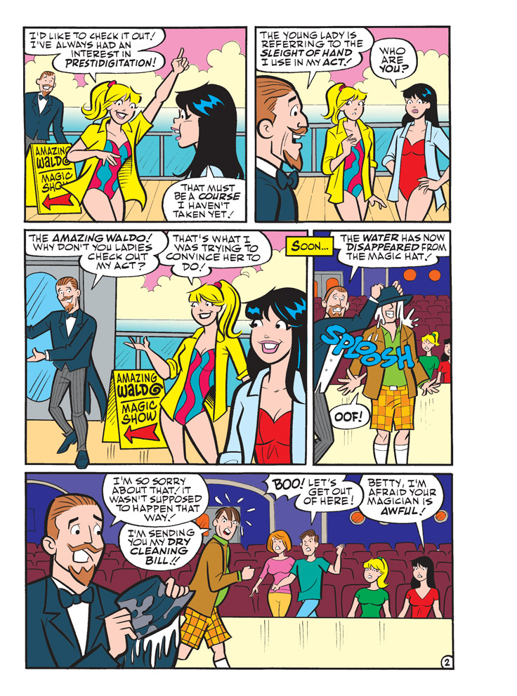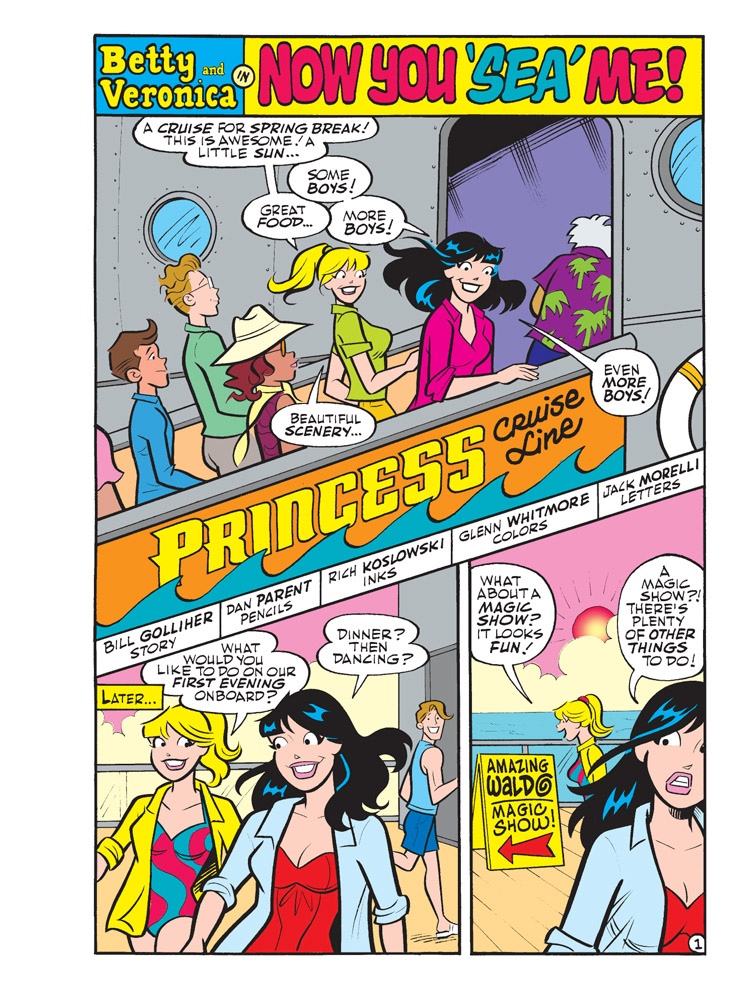 Brand New Lead Story: “Now You ‘Sea’ Me!” Betty and Veronica hit the high seas for Spring Break. But it’s not all fun and play as the girls start performing alongside the cruise ship illusionist—will they be able to work some magic on his terrible act?