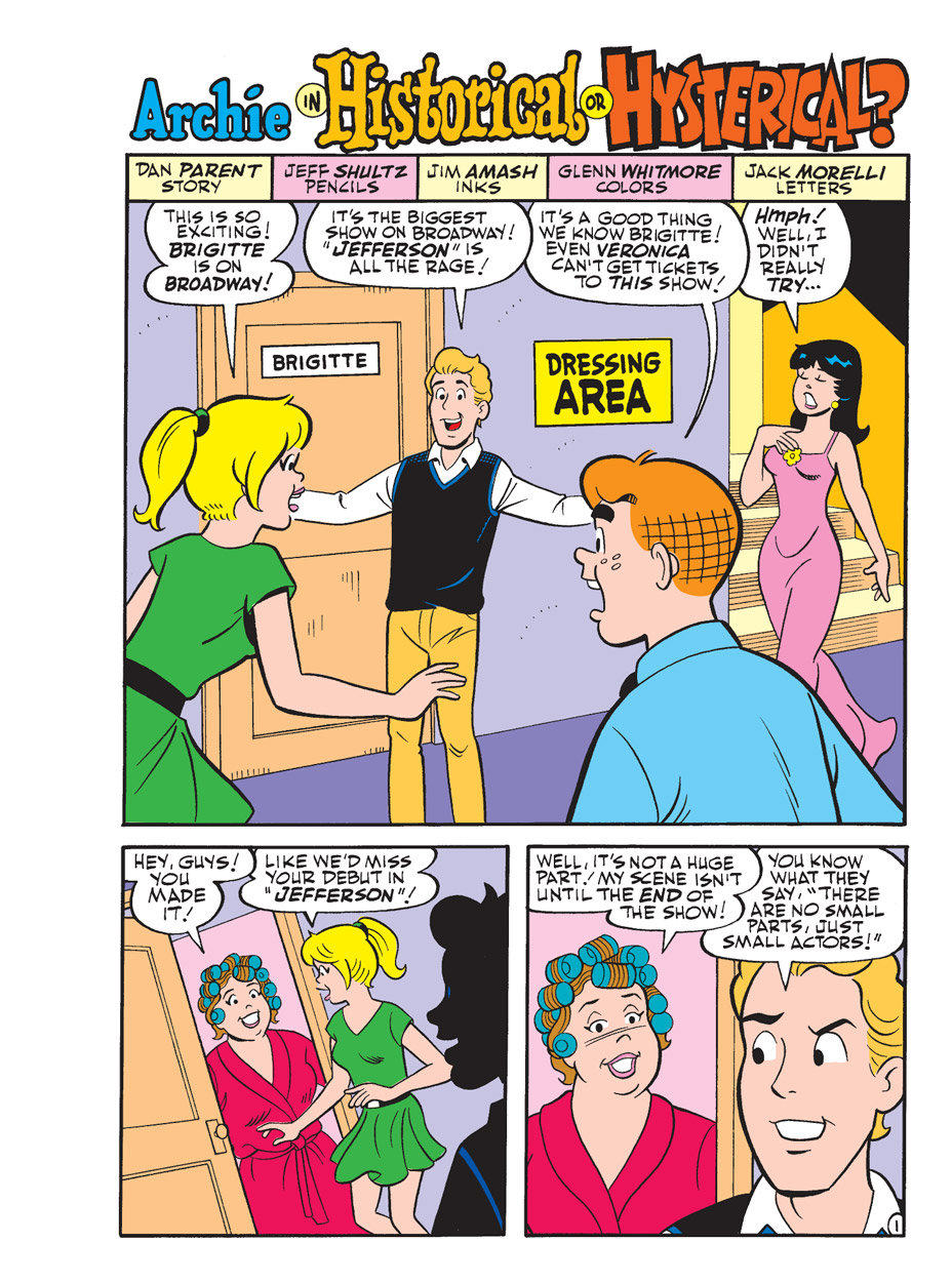 Brand New Lead Story: “Historical or Hysterical!” When Brigitte makes her big Broadway debut, the gang gets together to support her—but Veronica’s in need of support herself when her expensive gown rips in two!