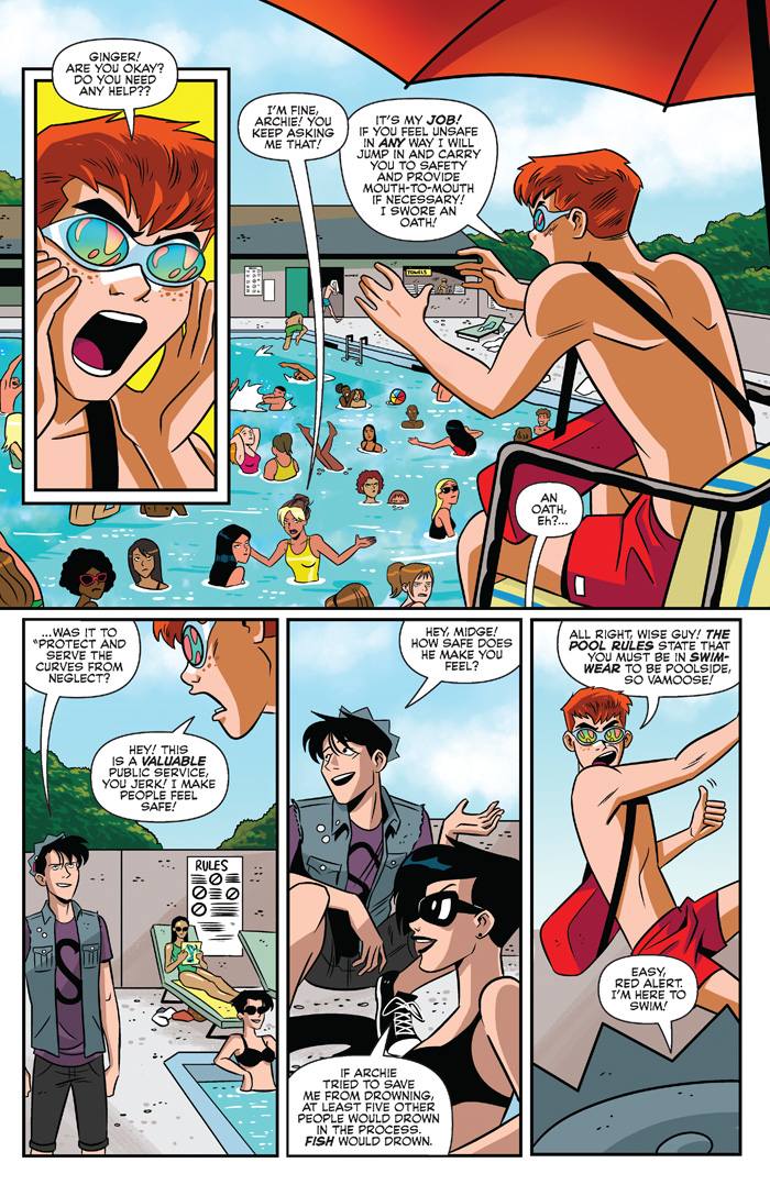 Read on for a first look inside JUGHEAD #7, BETTY & VERONICA SUMMER ANNUAL DIGEST #244, SONIC UNIVERSE #86, and PEP DIGITAL #183 – BETTY & VERONICA JUST KEEP SWIMMING!