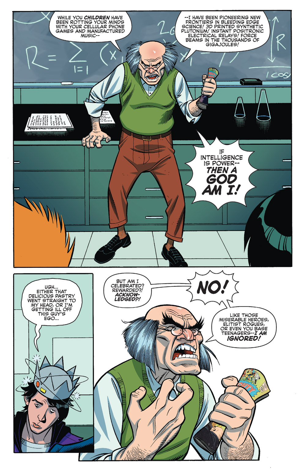 Riverdale High’s new substitute teacher is very odd. Snubbed by the scientific community, he plans his revenge—on the students of Riverdale High! It’s going to take a team of people with some mighty powers to stop him. Archie Comics’ two most renowned superhero teams are going to meet up for the first time ever in this special mini-series! Features cover 1 of 2 special connecting main covers!