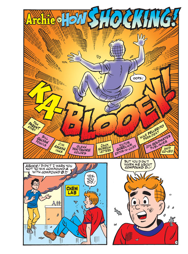 IT’S BACK TO SCHOOL for our DOUBLE DIGESTS! In the ALL-NEW story “How Shocking,” one of Dilton’s lab experiments goes awry (thanks to Archie), and things get REALLY weird!