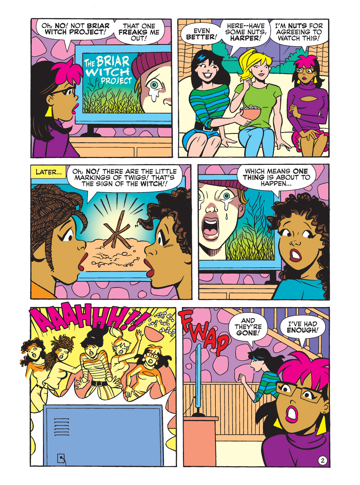 When Veronica decides the unlucky day is the perfect time to kick off a girls’ weekend deep in the woods at the Lodge Lodge, things start off nice enough! But when the gang pops on a scary movie, they’re soon jumping at every sound for fear of the dreaded Briar Witch. And to make things worse, the goings-on in the movie start to show up in real life. What happens next? Pick it up and read “Lodge of Terror” by Dan Parent to find out!