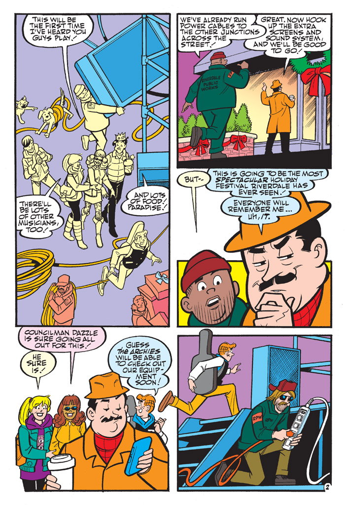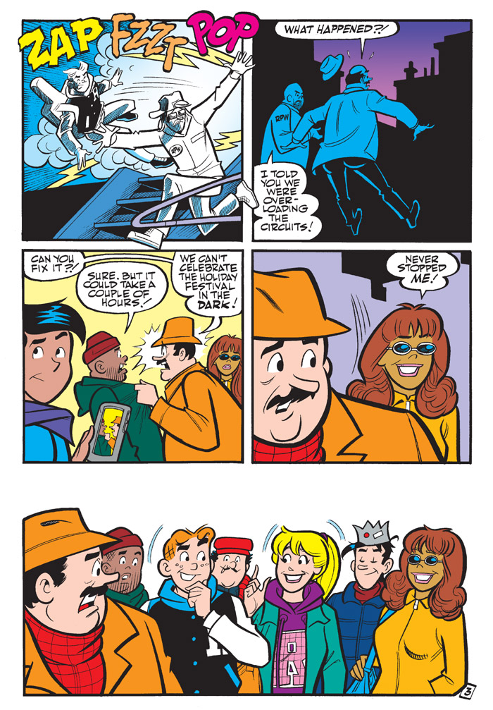The town leaders are planning a dazzling holiday show right in the center of Riverdale Square! Unfortunately, the Christmas spectacular turns into holiday havoc when they experience unforeseen technical difficulties! It’s up to Archie and his friends to revive this merry meltdown-and quick! Can they turn the show around and get everyone back into the holiday spirit in time? Find out in “Holiday Light,” the fun, new lead story.
