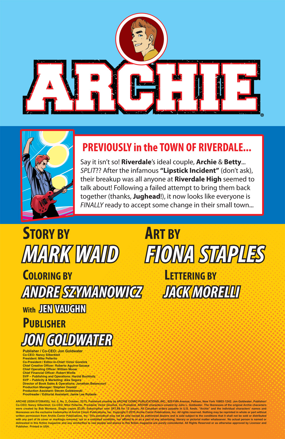Get the All New Second Issue of ARCHIE by Mark Waid and Fiona Staples Today!
