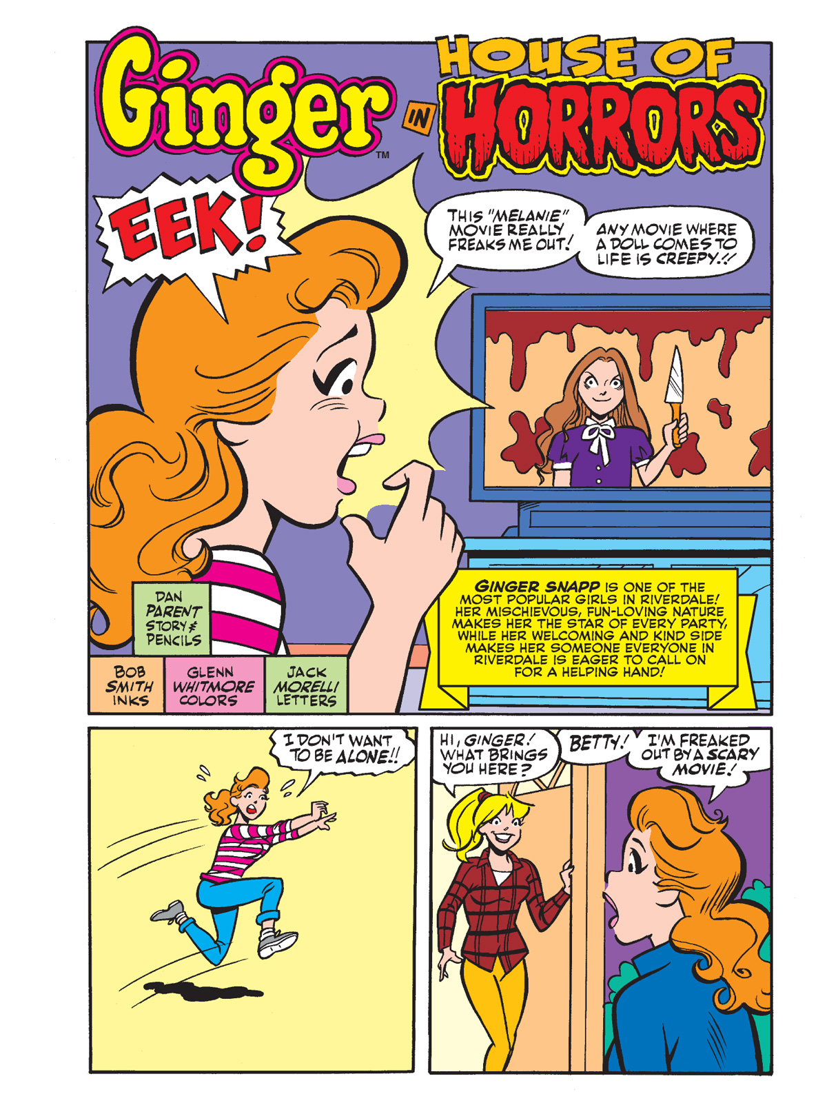 Then, in “House of Horrors” by Dan Parent, Ginger Snap snaps on Halloween when Jellybean Jones shows up in a too-real scary doll costume. This is gonna be a long night of trick-or-treating!