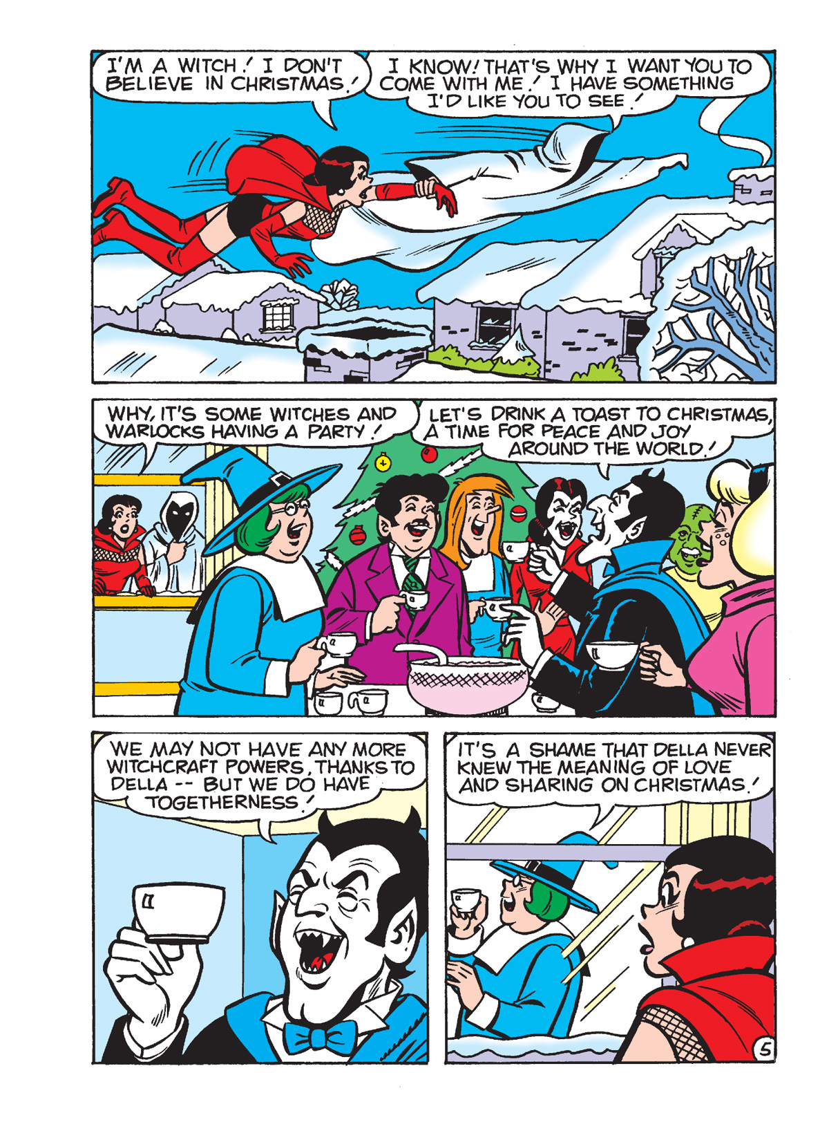 There’s a nip in the air, which can only mean one thing — it’s nearly time for the most magical time of the year! And at Archie Comics, we take that literally, especially with plenty of Halloween candy still to snack on. In this week’s new issue of BETTY & VERONICA DIGEST, we’ve got a whole stocking full of holiday treats, kicked off with a witchy classic by Dick Malmgren, the Sabrina-starring “A Ghost Host.”