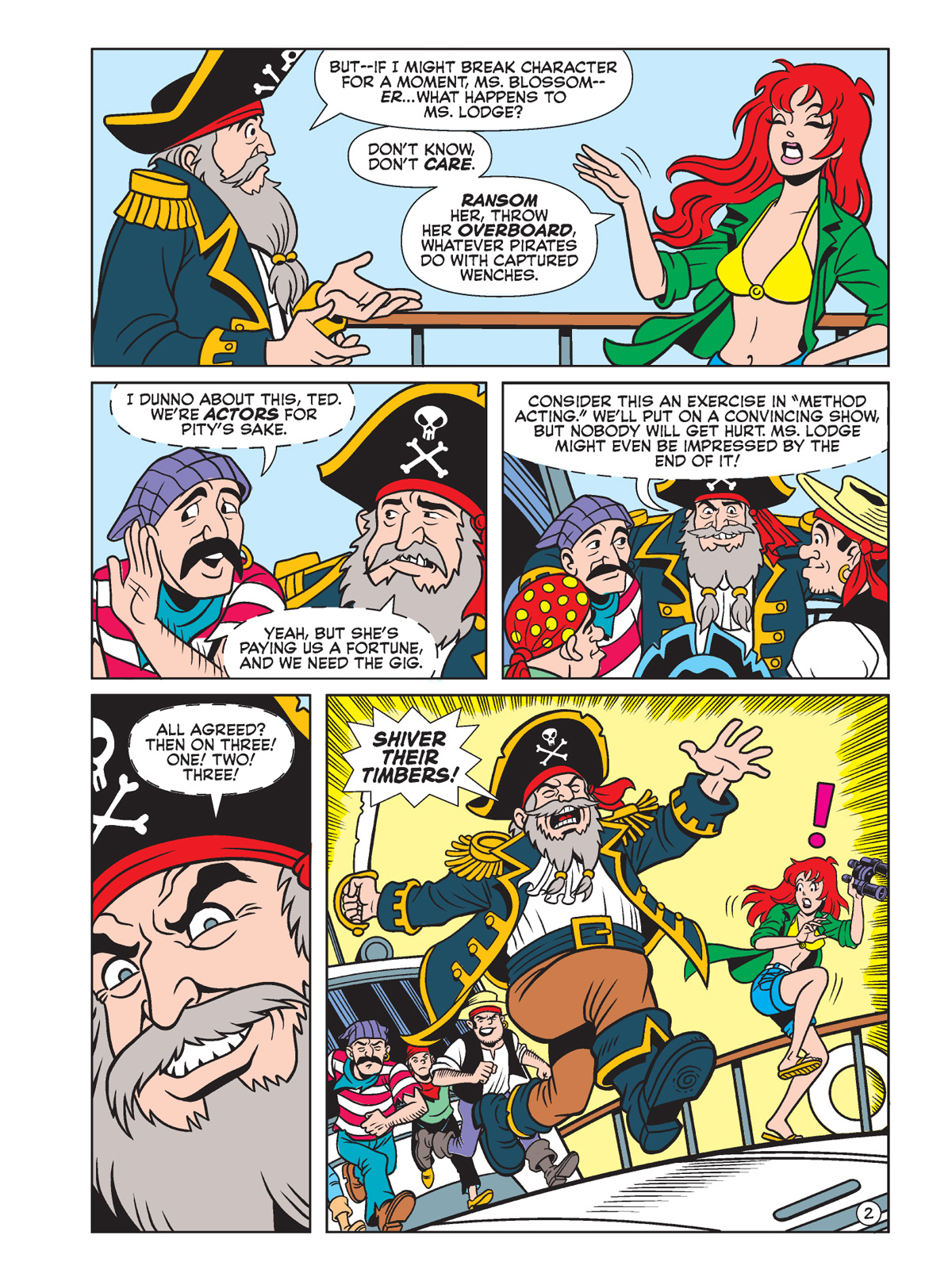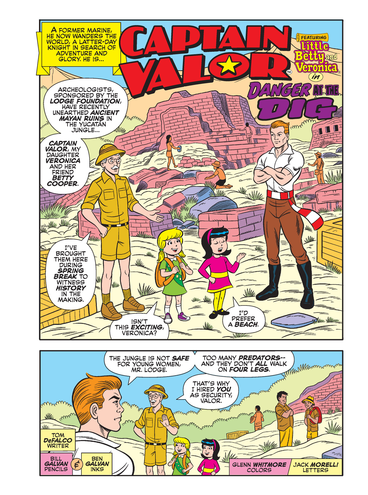 In “Danger at the Dig” by Tom DeFalco and Bill Galvan, Little Betty & Veronica team up with Captain Valor in an archaeological adventure. Then, in “Yacht’s Wrong With You?!” by Ian Flynn and Steven Butler, Cheryl Blossom is heated up when Veronica shows off a better yacht, so she does what anyone else would do in that situation: hire Captain Scalliwag and a band of pirates to steal it! Looks like a job for high-seas hero Captain Commando.