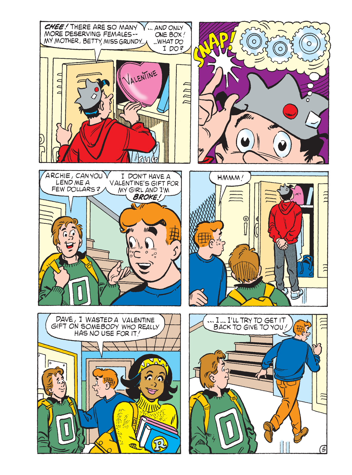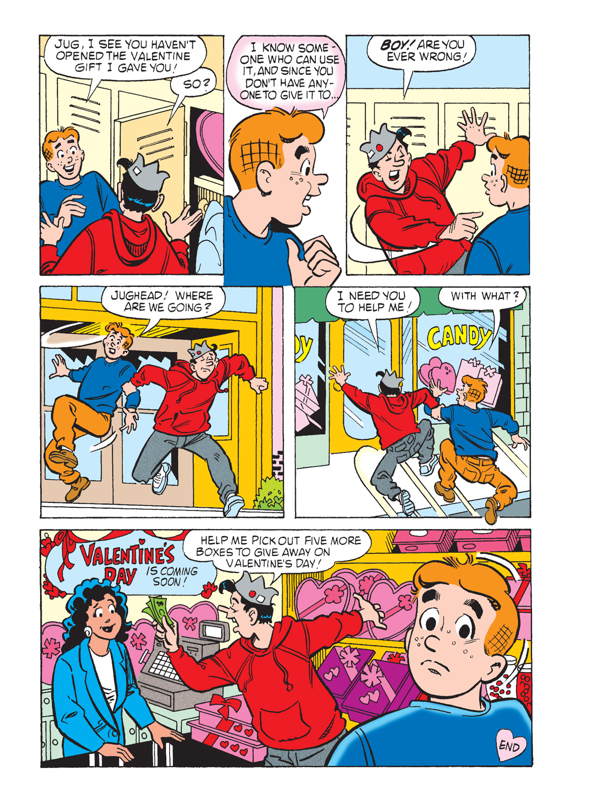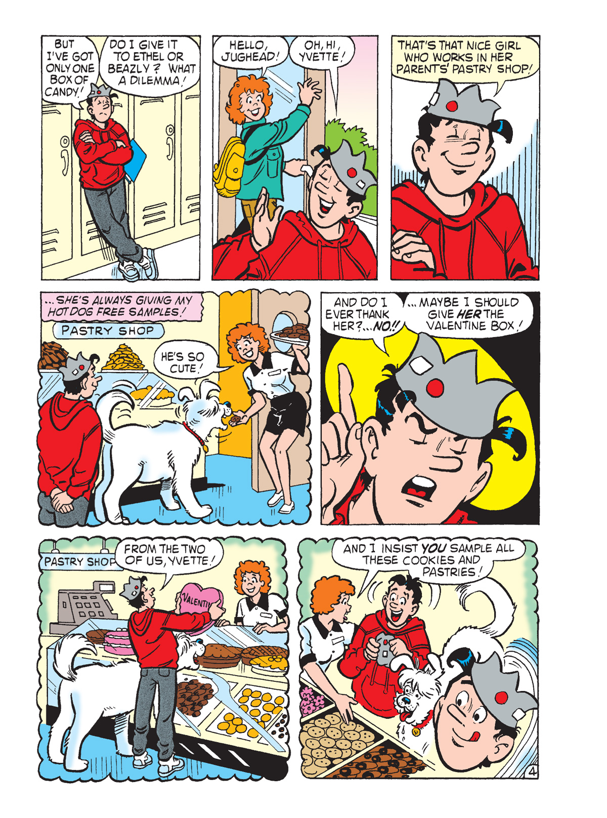 Nothing says Valentine’s Day quite like a pocket-sized Archie digest, tied with a ribbon and unwrapped on that special day. The gang is at their best when embroiled in the many triangles of love we always have in Riverdale, and this week’s new addition to the Valentine’s Day library is no exception! We’re kicking things off with a complete classic you can read in full below, “The Dilemma” by George Gladir and Stan Goldberg, in which Jughead sets hearts aflutter all over school. Wait, did you read that right?!